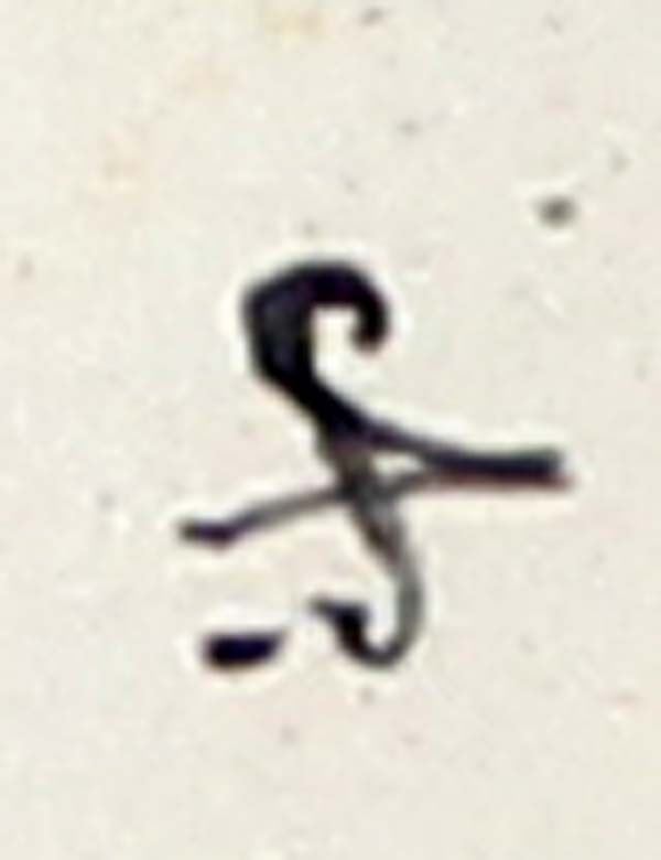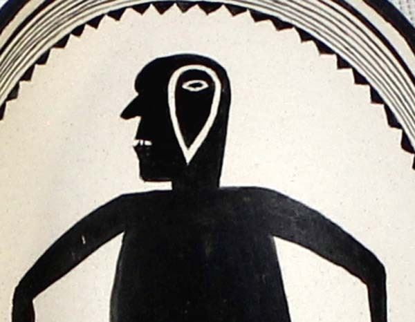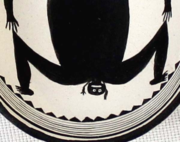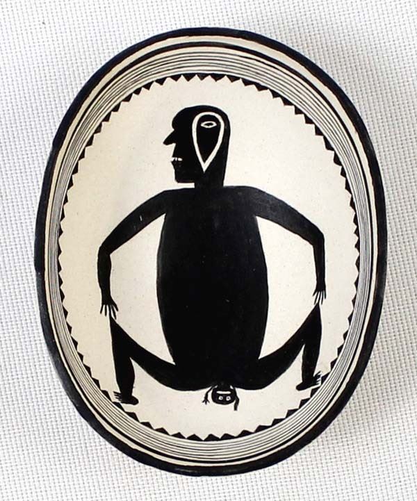 Miniature Mimbres Design Pottery Birthing Bowl, black on white, measures 2.5'' x 1.75'' and has artist's initials on the bottom