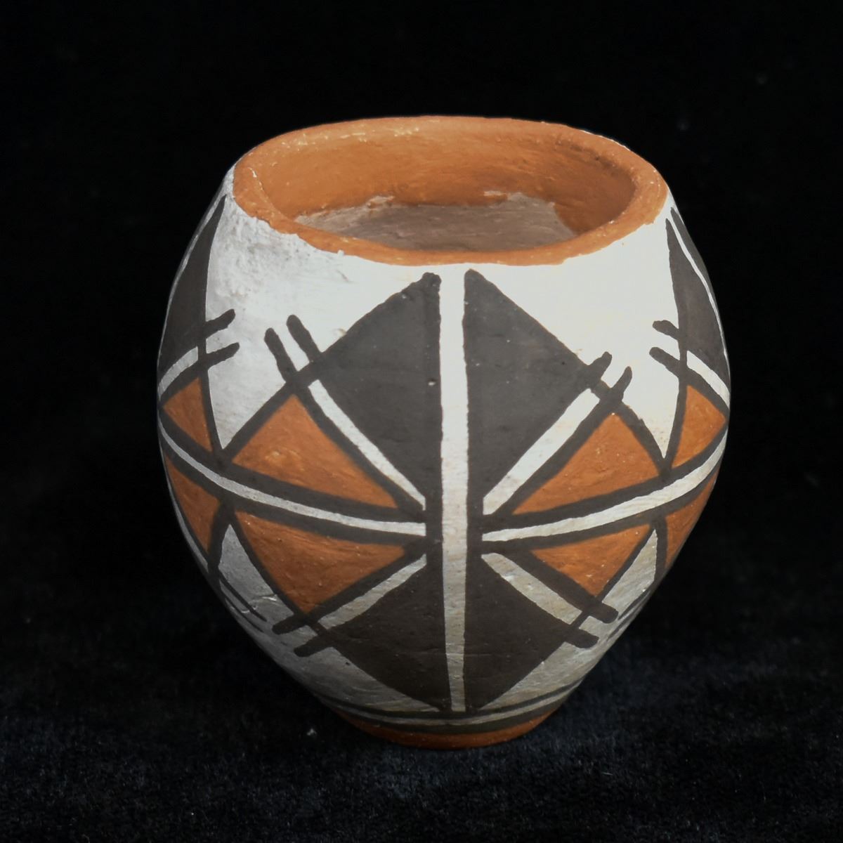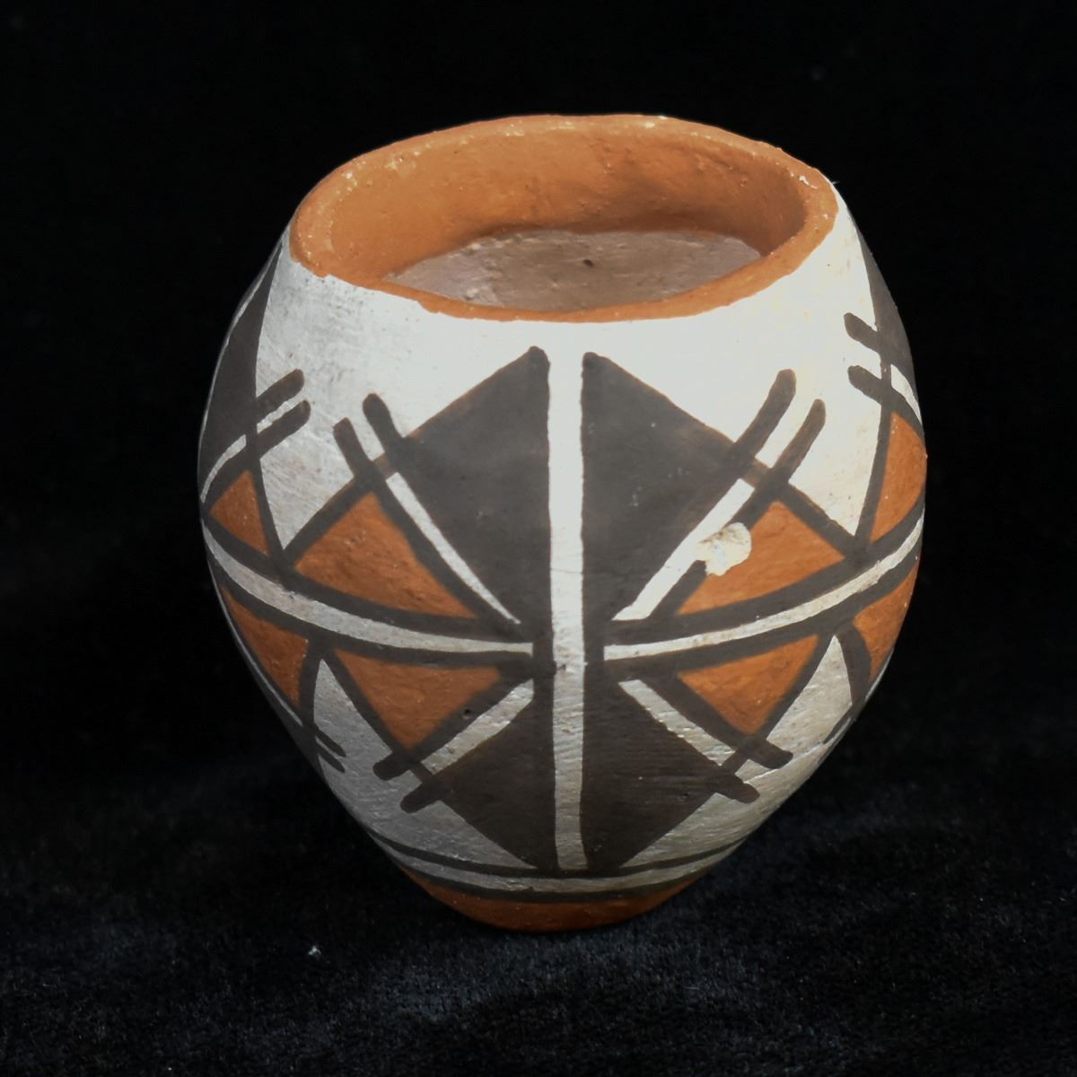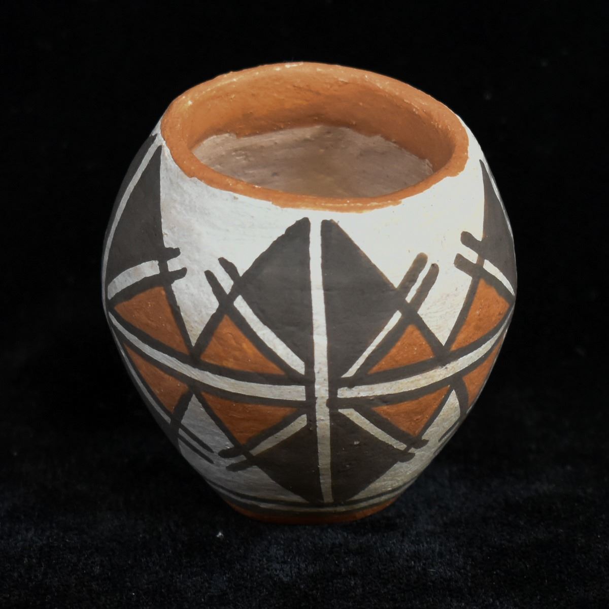 Miniature Native American Acoma Pottery Jar, measures 1.5'' x 2'', artist JPB