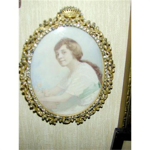 We offer a terrific miniature potrait identified as Tatiana, Grand Duchess of Russia and daughter of Nicholas II,the last Emperor of Russia. Probably painted for the Romanoff tecenerary in 1913, this painting is set in a highly elabotate frame with brilliants and a gilded coronet set above.