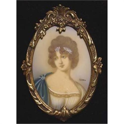 Miniature portrait on acetate of a woman in neoclasical dress. Comes in a heavy, oval bronze frame and is protected by a convex glass. Frame has ring on the back and is ready to hang from the wall. Please ask questionsm request additional photos and shipping costs before buying.
