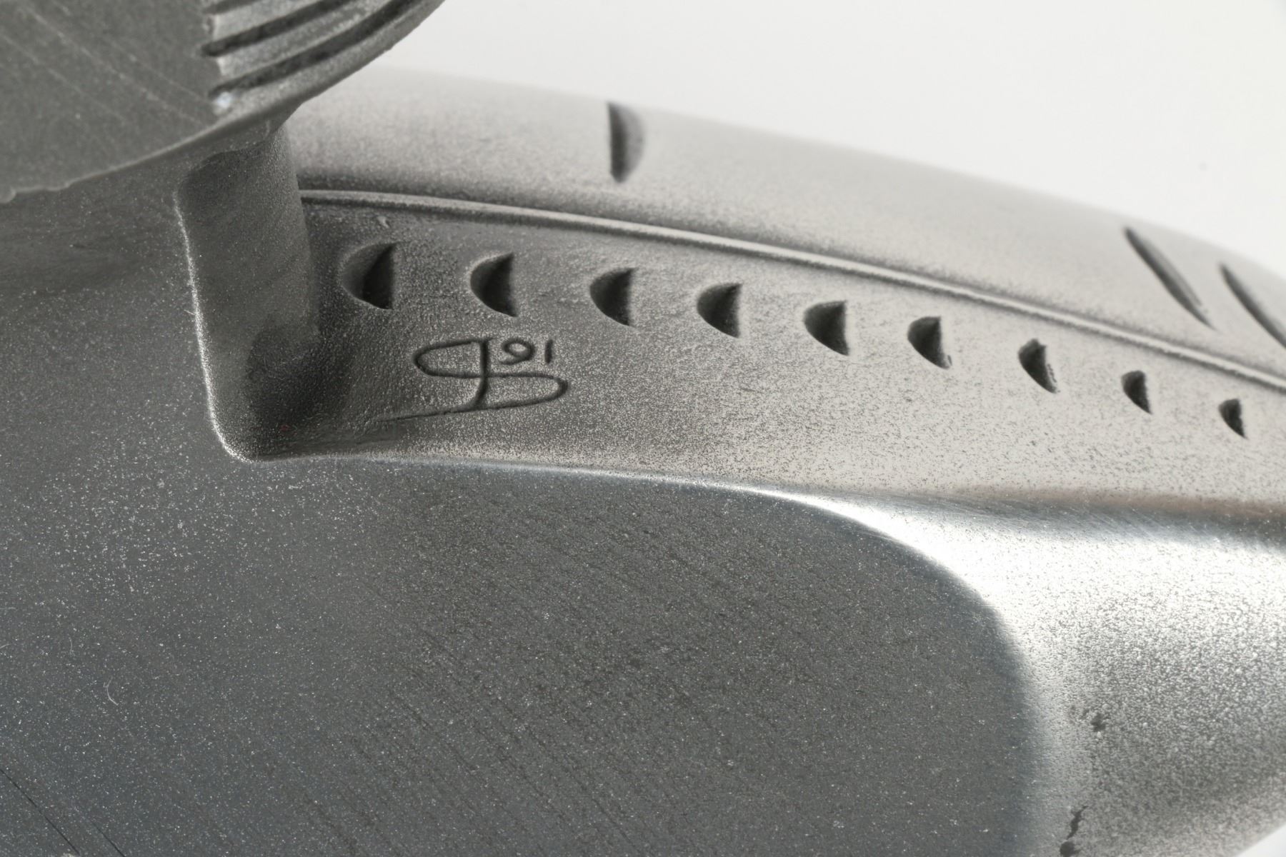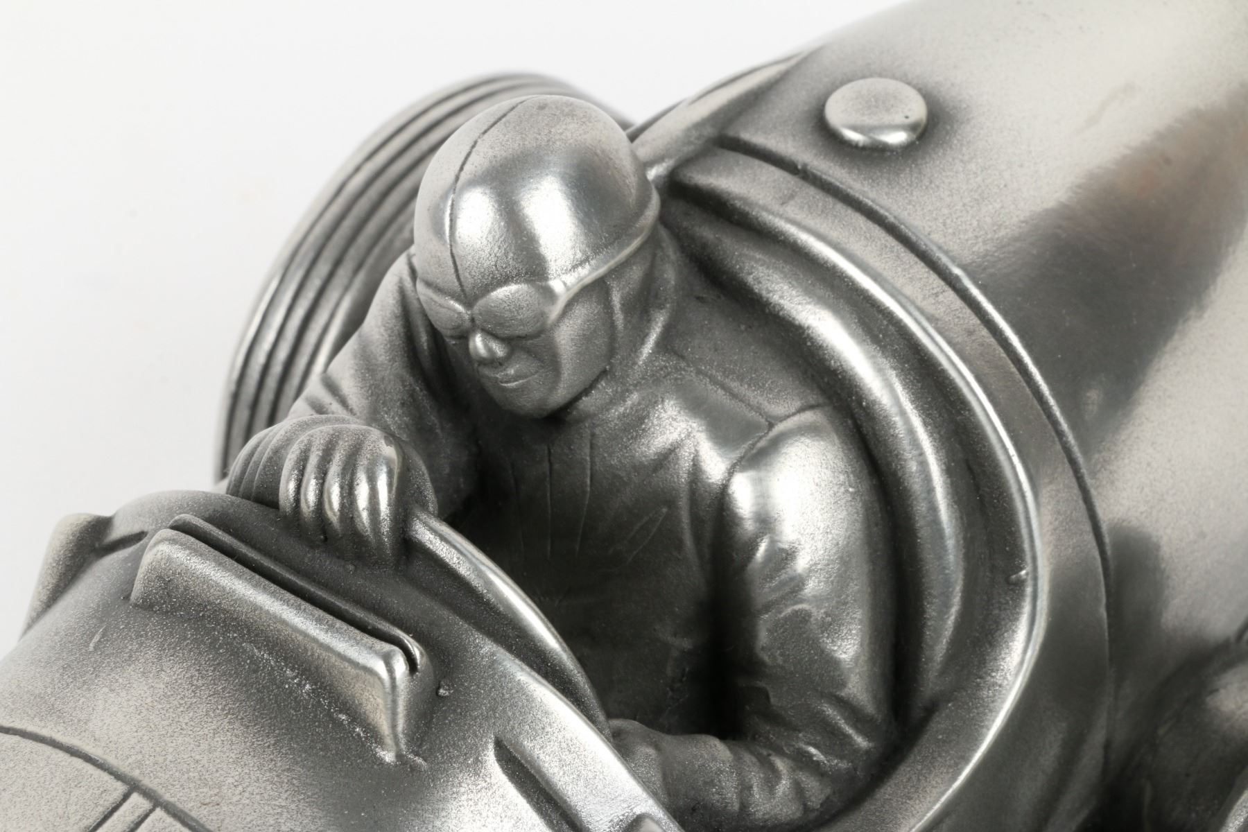 English. Compulsion Gallery. Incised with trademark "91". Retains maker's decal underneath. Pewter-plated resin. 14" x 5" x 6". No chips, cracks or damage. 100-200.