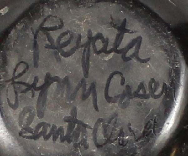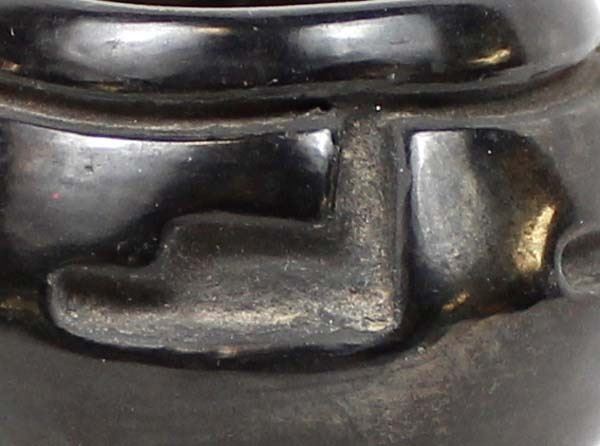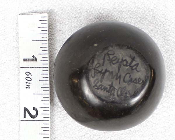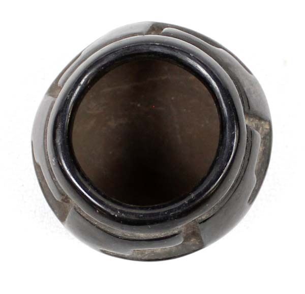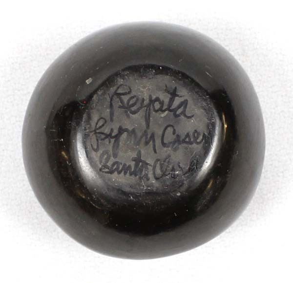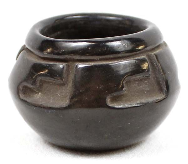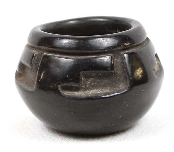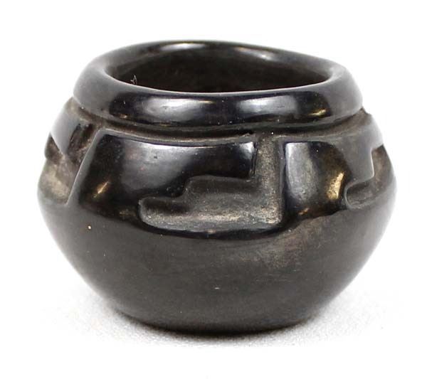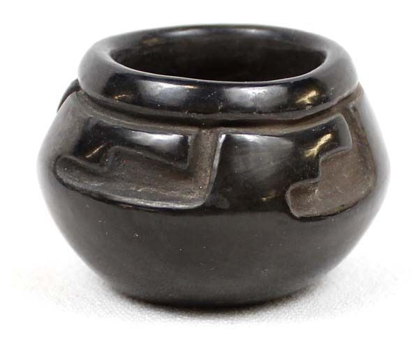 Miniature Native American Santa Clara Carved Pottery Jar by Reycita Lynn Cosen (1927-2012), measures 1.5'' x 1.75'' and is signed on the bottom, FYI: ''She was known for the complex carving on her pottery. Each piece was coil built, carved, stone polished, and traditionally fired.''