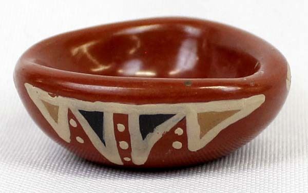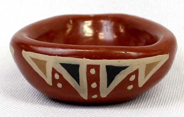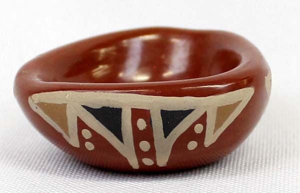 Miniature Native American Santa Clara Pottery Bowl, Hand Painted, measures 1.75'' x 1.5''