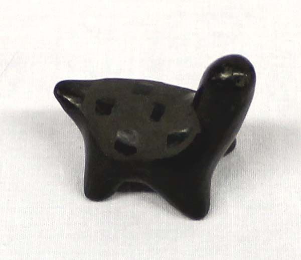 Miniature Native American Santa Clara Pottery Turtle, Matte on Black Checkerboard Designs on Back, measures 1'' x 1''