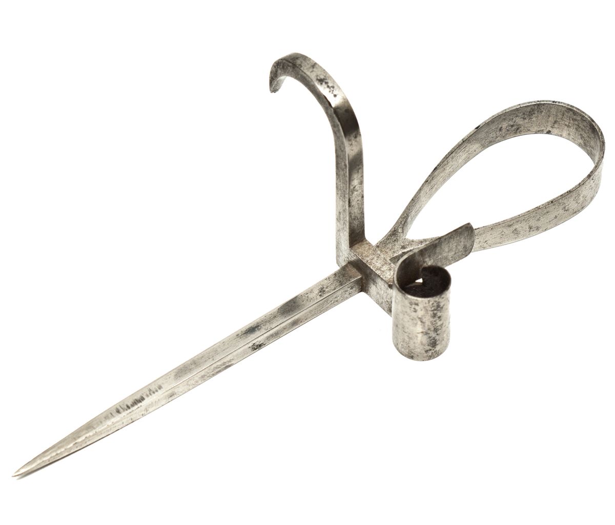 A very nice Tommy Knocker in a 6" size, quite possibly from the 19th Century. Piece is nicely polished and blacksmith made. There are no visible marks, names or numbers. Piece shows choice craftsmanship. Not listed in Wilson. RCS 51. - Ken & Rosemary Roberts Collection -59130