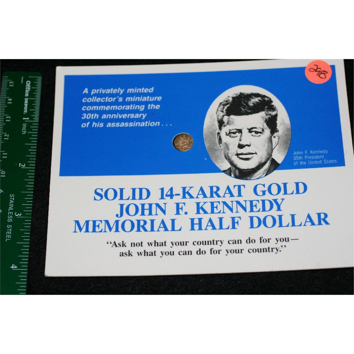 Miniature Solid 14K Gold JFK Memorial half dollar