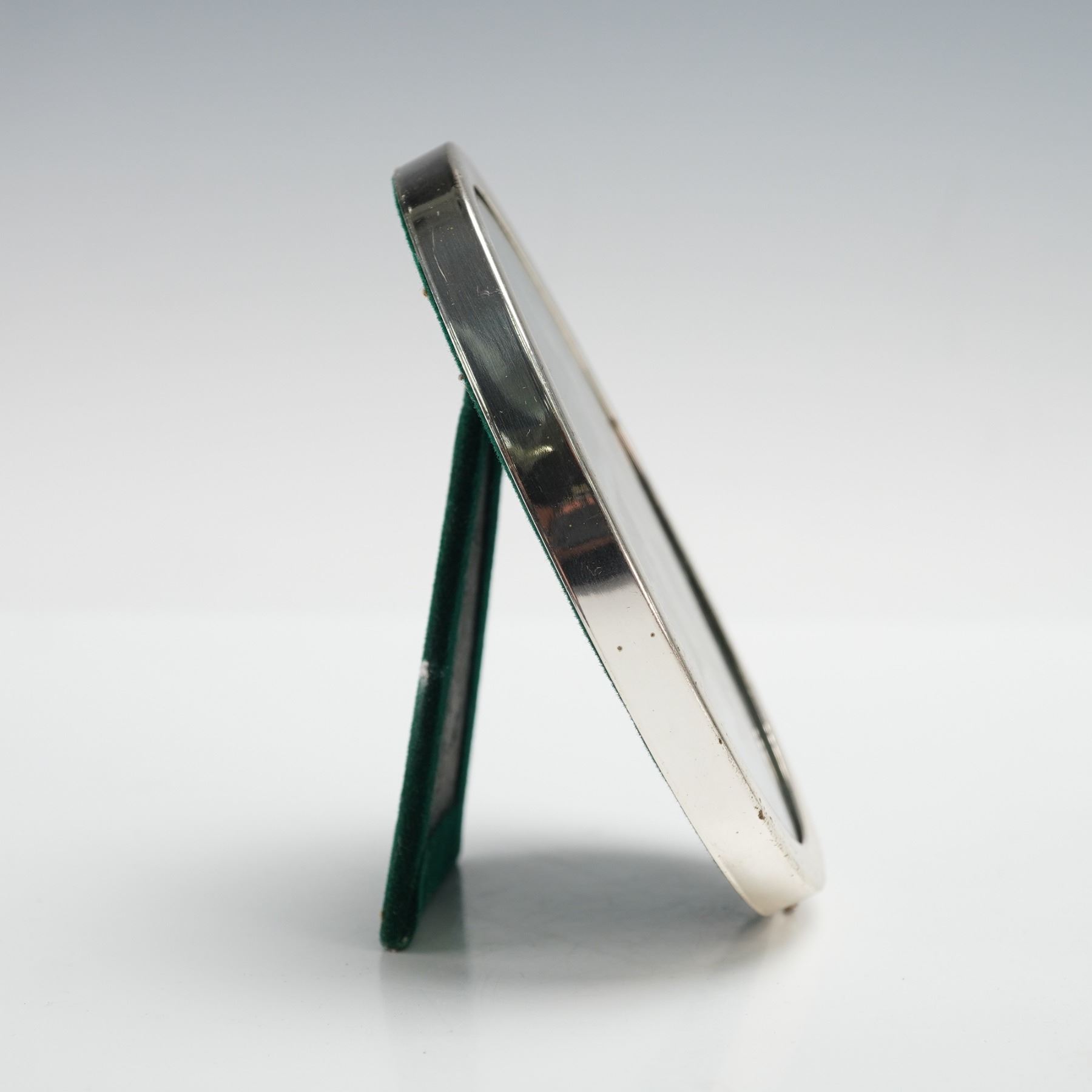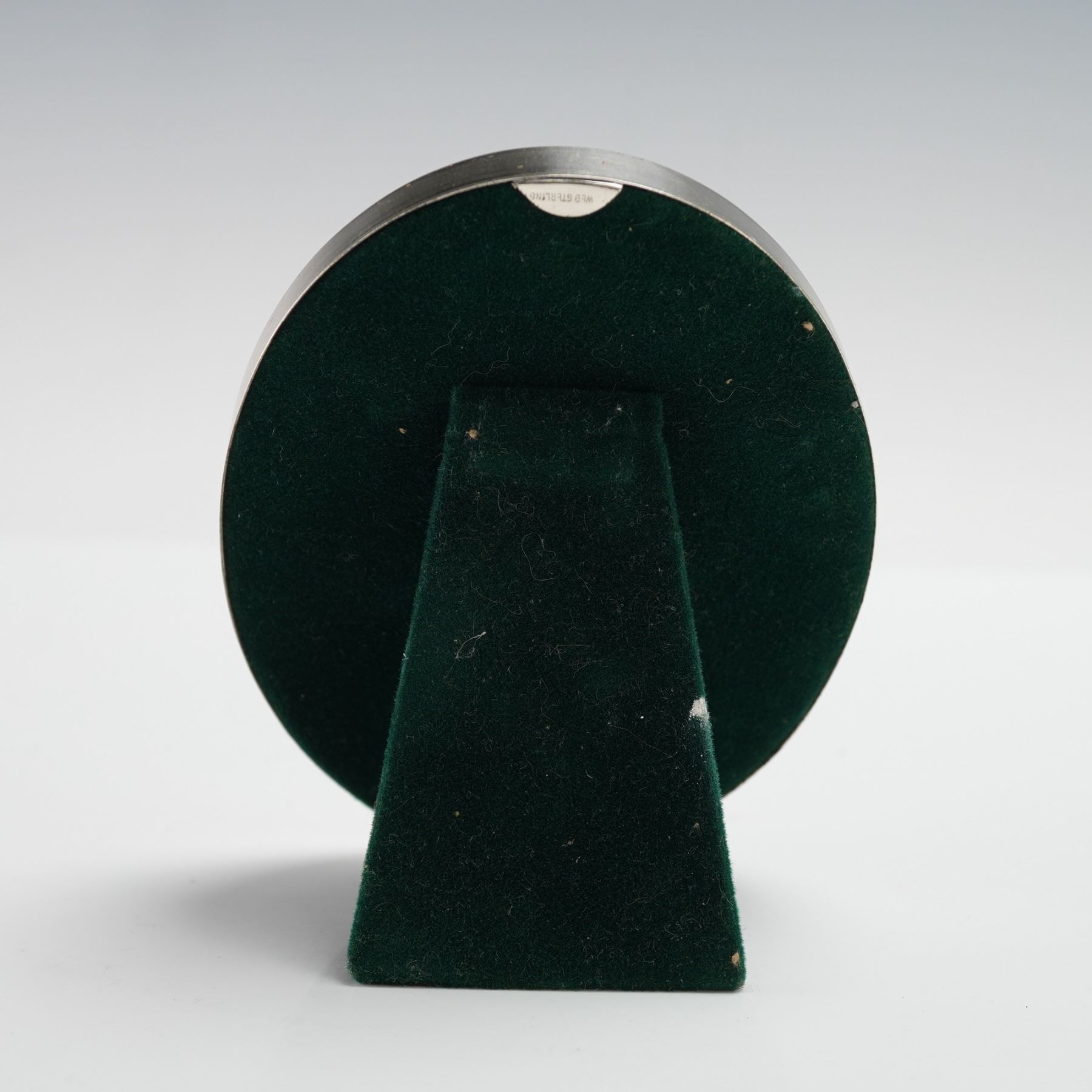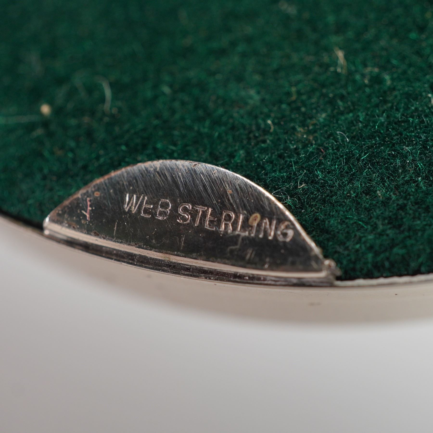 A refined oval tabletop picture frame featuring a polished sterling silver border surrounding a smooth black interior surface. The rear is lined in dark green velvet with a hinged easel stand for display versatility. The underside bears the maker's mark "WEB STERLING," identifying it as a piece by the Web Silver Company, known for their elegant sterling accessories. The overall weight is 169g.