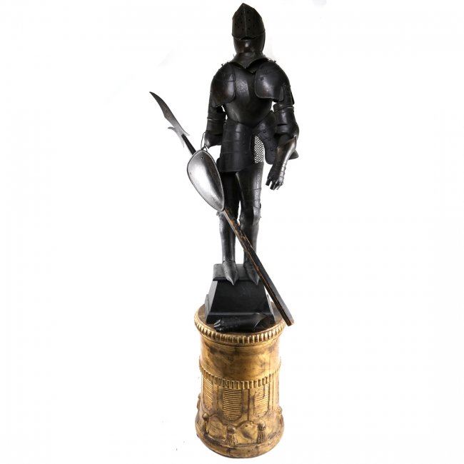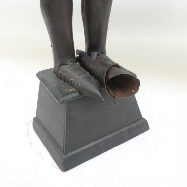 Small diminutive suite of armor. [36" x 8 1/2" x 5"]. Right arm has come detached.