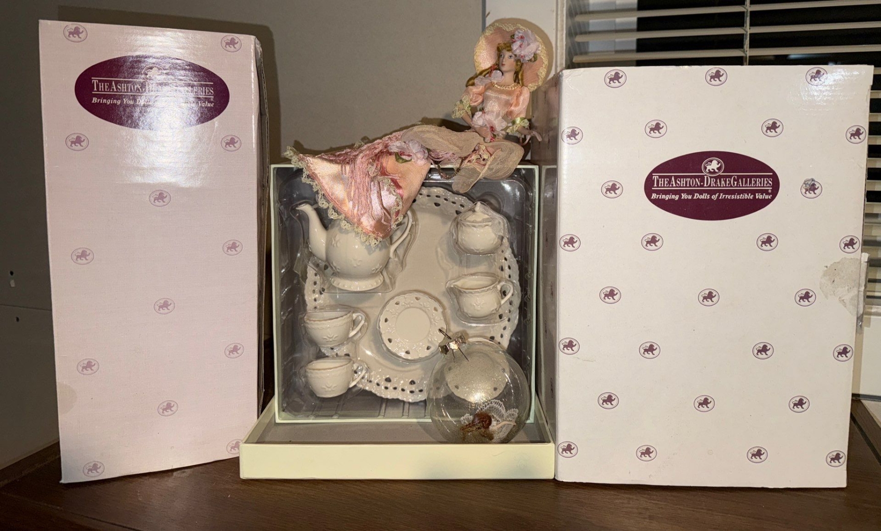 Miniature Tea Set Beautiful Doll In Pink & 2 Mystery Unopened Boxes