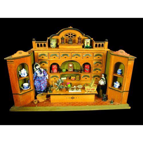 Miniature Tin General Store Display with all of the accessories. Excellent Condition. Approx. 20 inches wide.