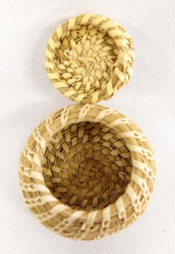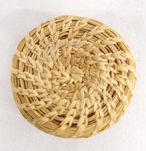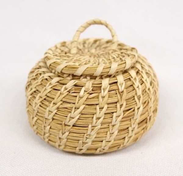 Miniature Native American Tohono O'odham Lidded Basket, measures 1.5''H x 2.5''D