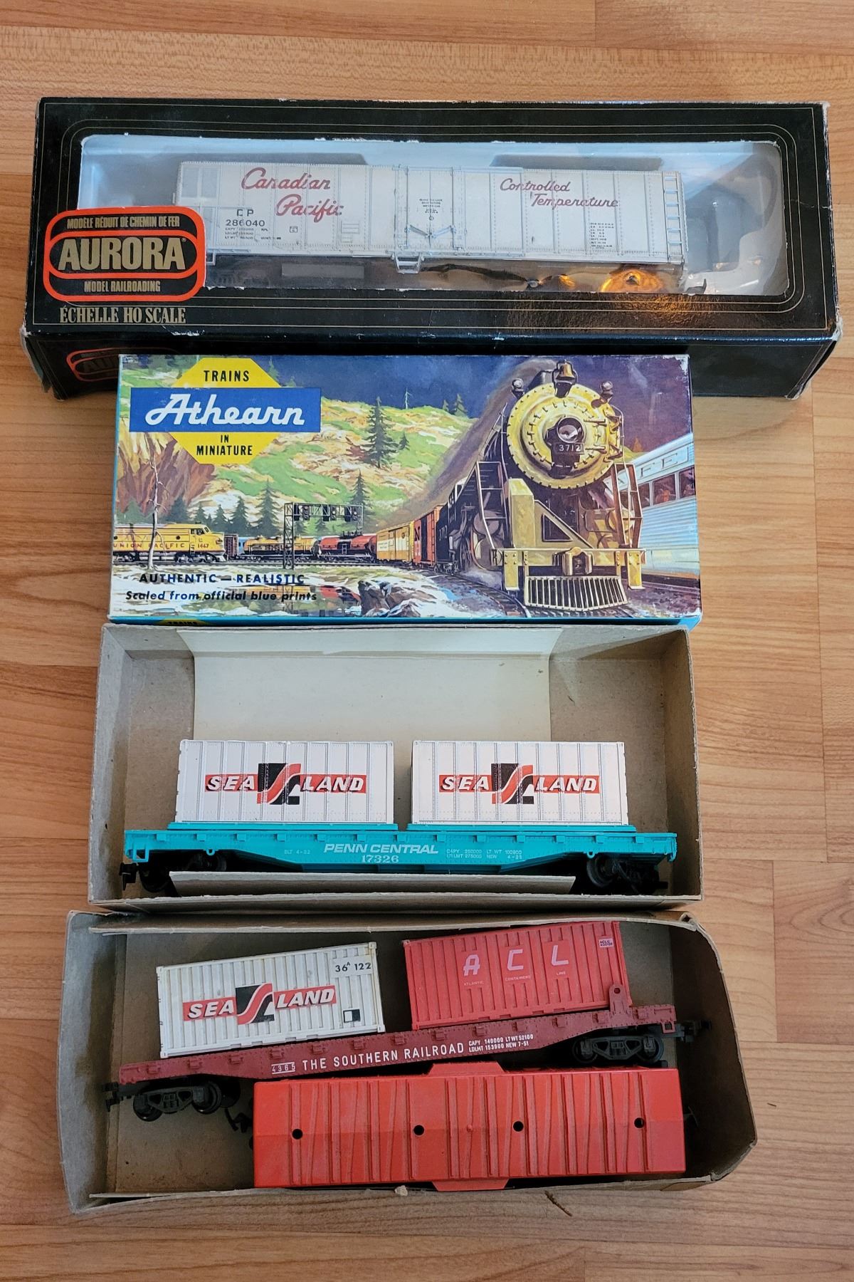Miniature Trains; Aurora Canadian Pacific 286040, Penn Central 17326, Southern Railroad 4365, CN 78011