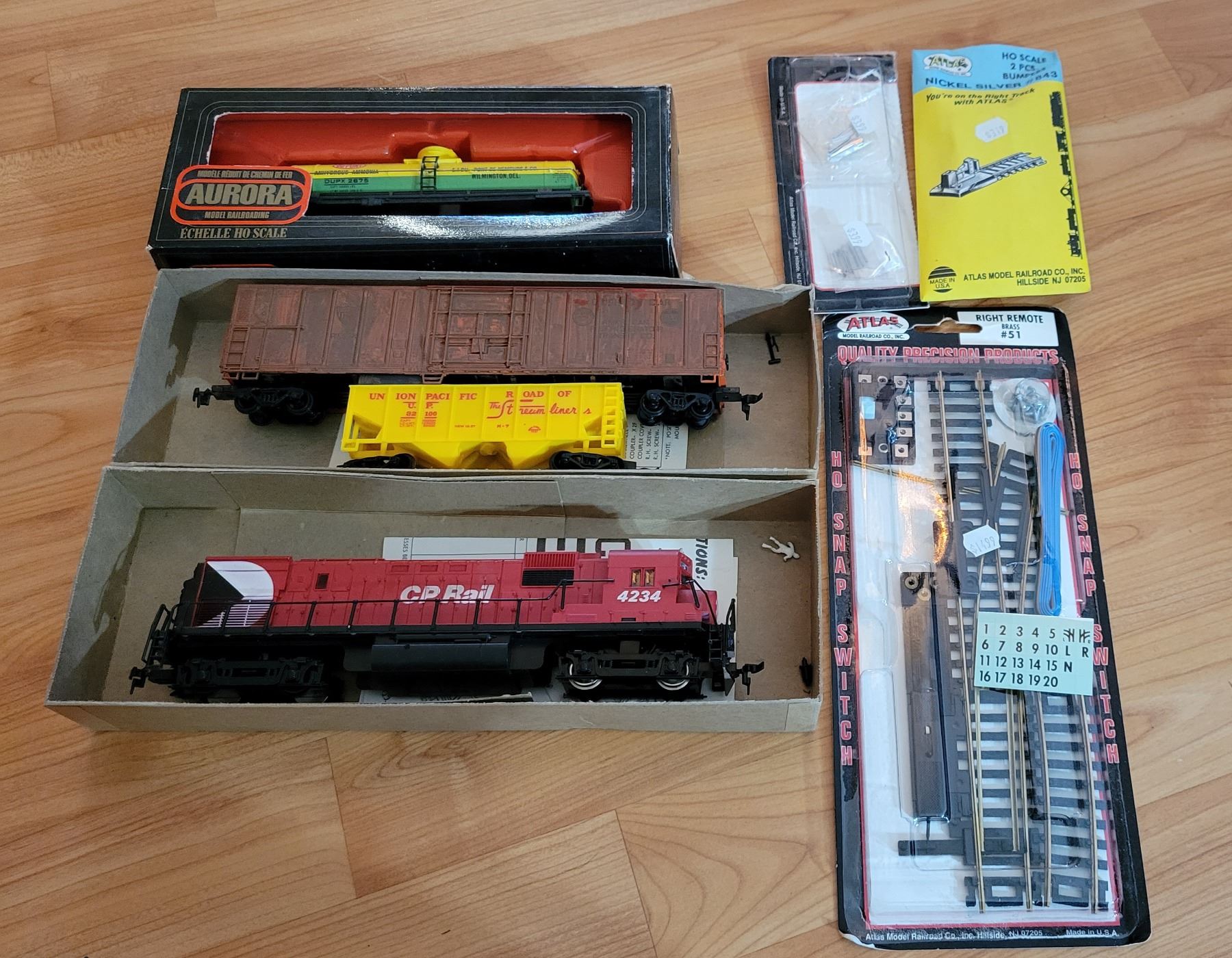 Miniature Trains and Supplies; Aurora DUPX2675, unmarked, Union Pacific 32100, CP 4234