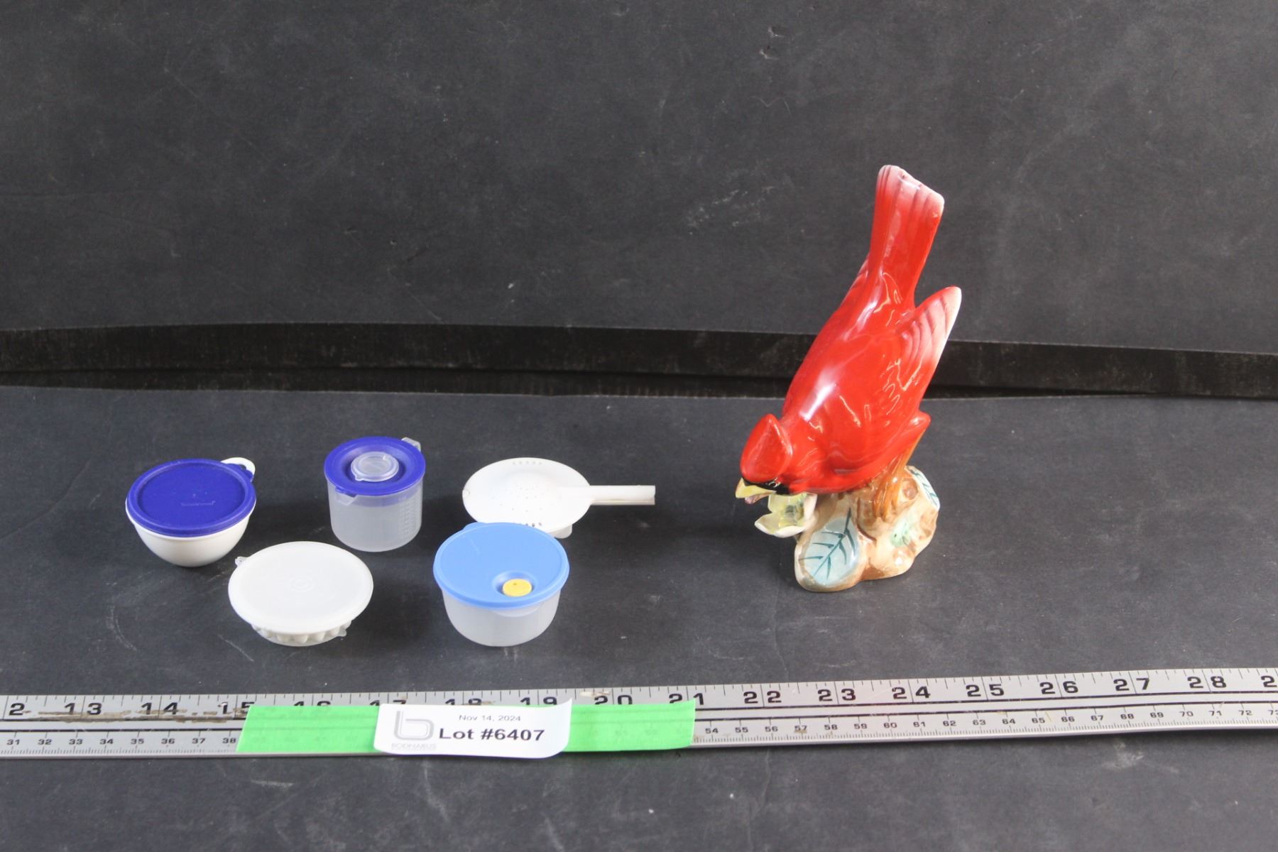 Miniature Tupperware and Vintage Napco Japan Cardinal Bird Figurine