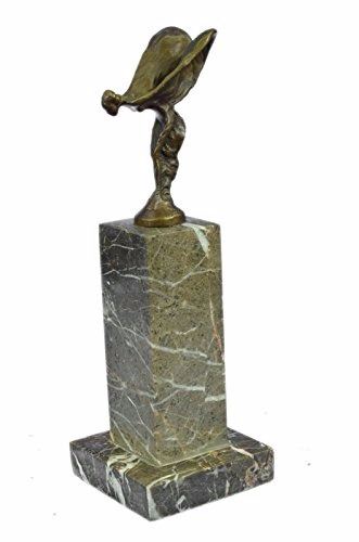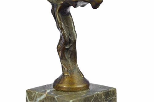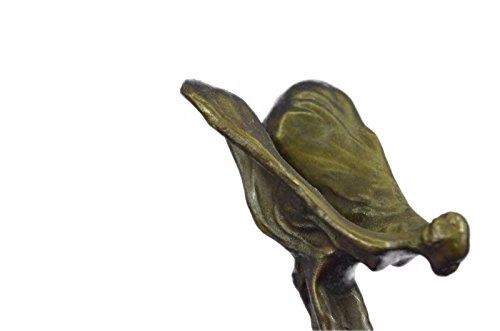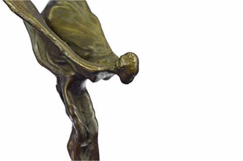 The bronze slender woman bends in a high bow. Both arms stretch backwards bird-like as the definition of her limbs dissolve into wings of fabric. Her head is posed straight at the beholder as her eyes seem to be mustering the levity for flight. Great details are possible in the fabric because of the method of lost-wax casting used. She stands perched upon a black marble base and stained with brown patina tarnish. Bronze Dimensions with Marble Base: Height 11 X Width 4 inches. Weight: 4 LBSPlease Note: This is a reproduction bronze sculpture from the original molded and signed. This featured bronze sculpture is a recast after the original, and has been done recently. This 100% bronze sculpture is an abstract piece certain to be a conversation piece.Please Note: This is a reproduction bronze sculpture from the original molded and signed. This featured bronze sculpture is a recast after the original, and has been done recently. This 100% bronze sculpture is an abstract piece certain to be a conversation piece.