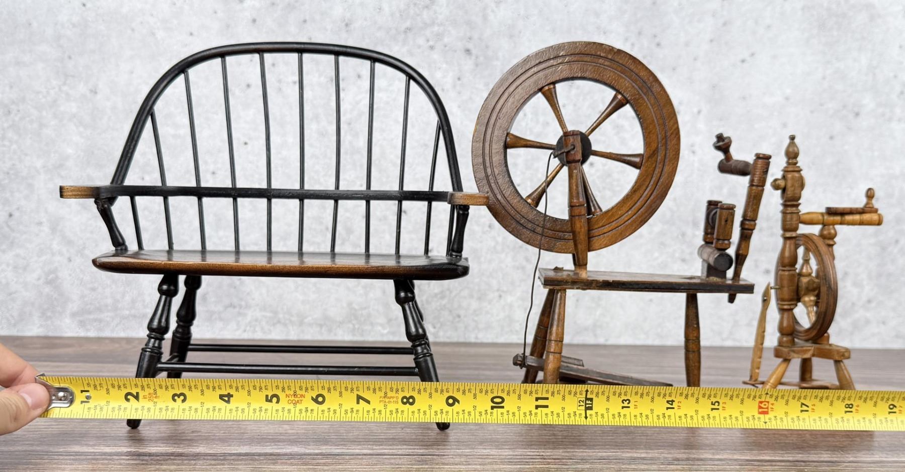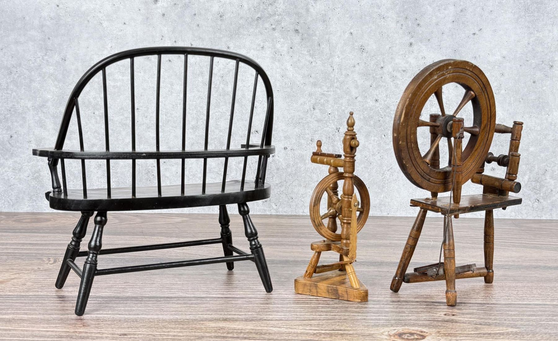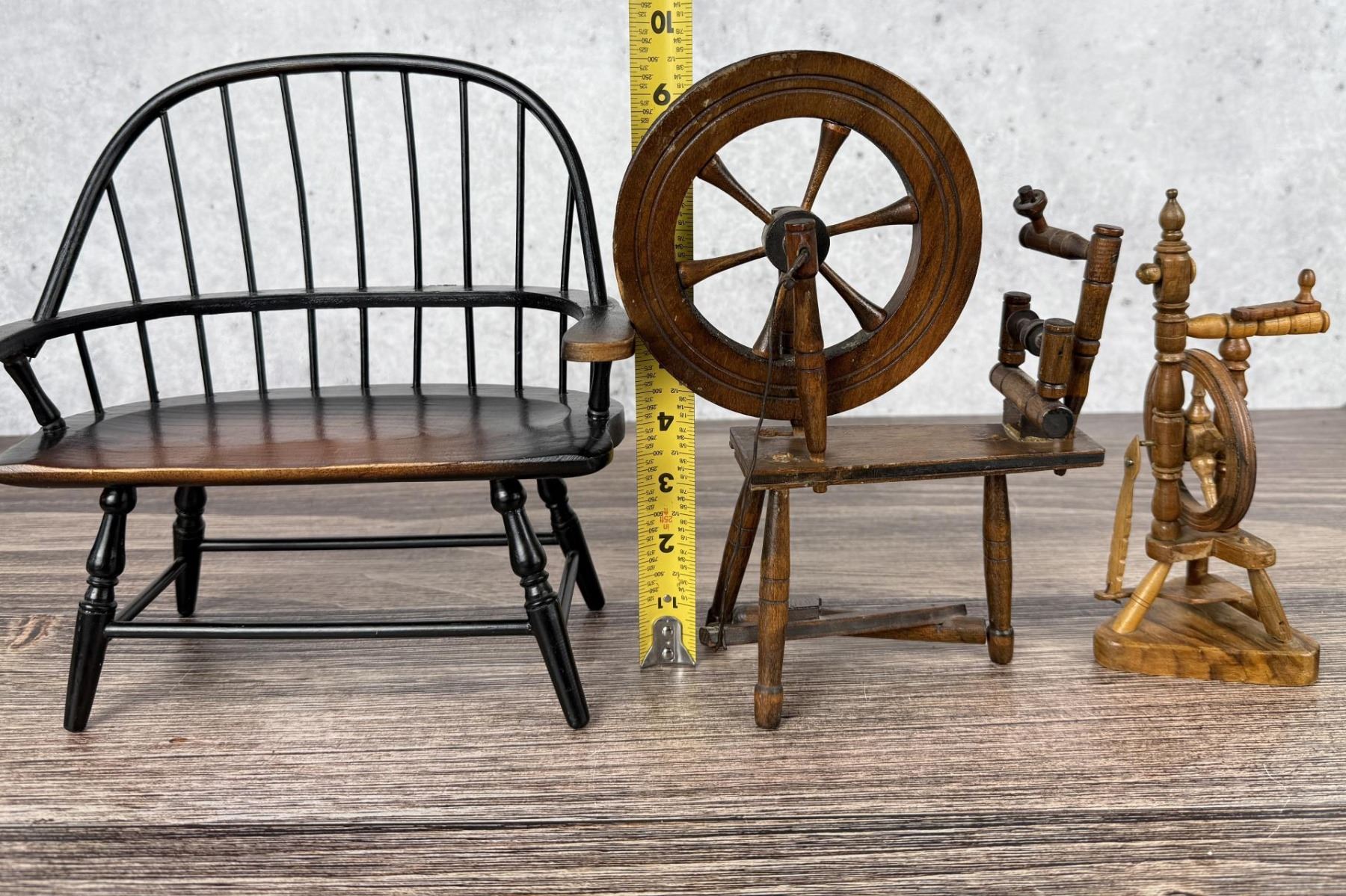 Miniature Windsor Bench and Spinning Wheels