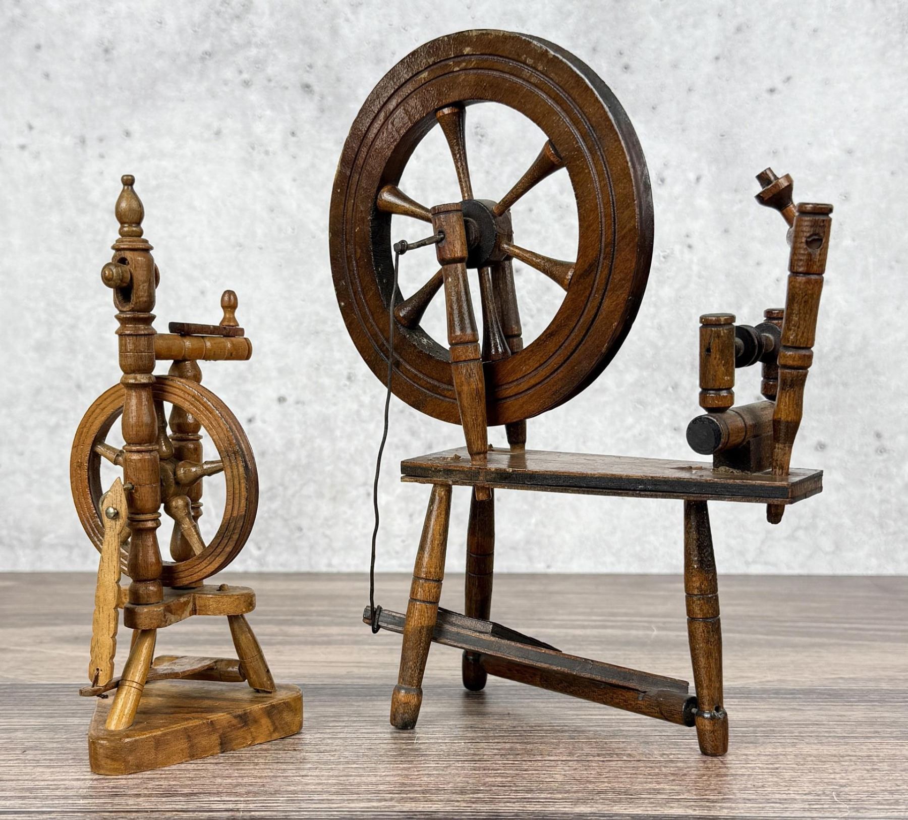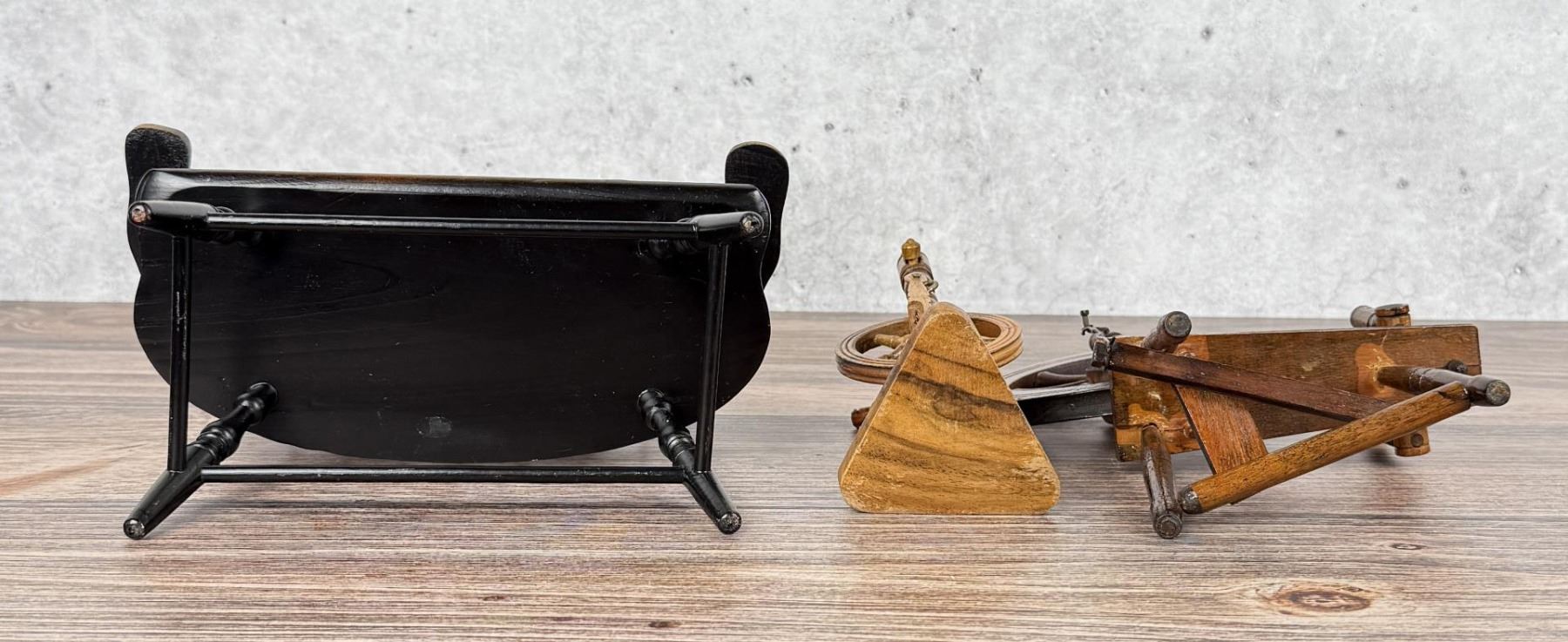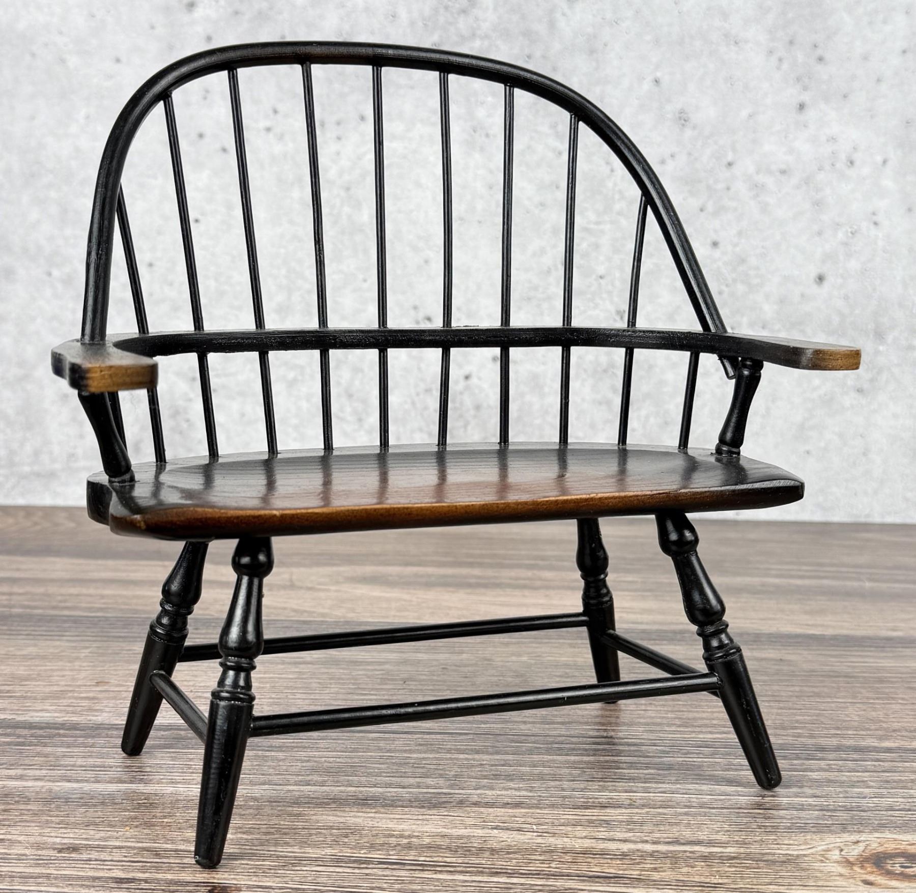 Miniature Windsor Bench and Spinning Wheels