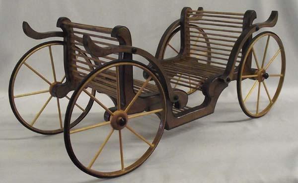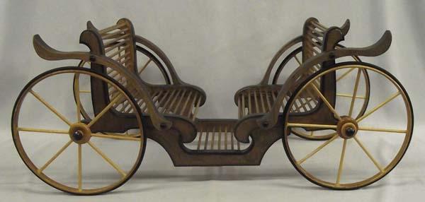 Miniature Wooden Buggy, wheels turn to make buggy roll and are removable, measures approx. 11 3/8''W x 26''L x 11''H. Buyers Pay Actual Shipping and Handling Charges(see terms and conditions for more information)
