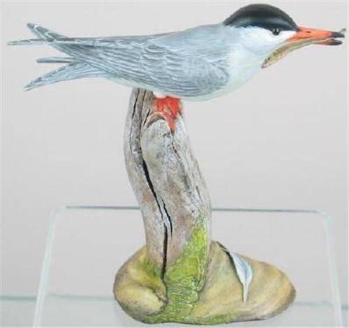 Miniature common tern with a minnow in the bill by noted Cape Cod carver Steve Weaver in excellent original condition. Carved crossed wings and split tail. Signed and dated 2005 on the bottom which also has a carved feather mounted on the base. (decoy)