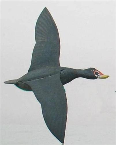 Miniature flying surf scoter drake with a 6 1/2 in wing span signed "A. J. Dando, "33" on the underside of the wing. XOC. (decoy)