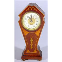 Miniature inlaid mahogany shaped mantelclock, 16cm high