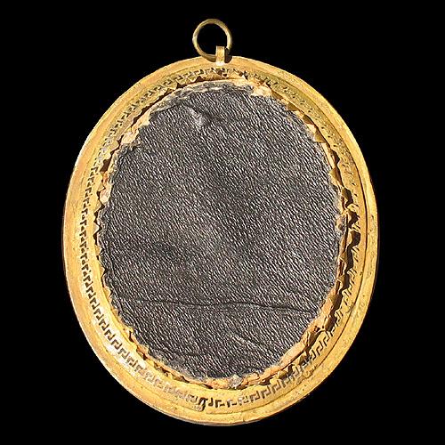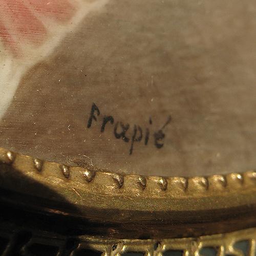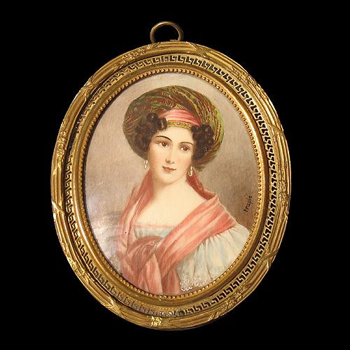 Miniature portrait of a lady painted on ivory in brass frame; signed lower right Frapie; image size 3 1/4" x 2 1/2"; frame size 4" x 3 1/2"; late 19th to early 20th C. (no visible defects)