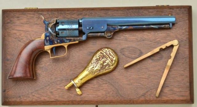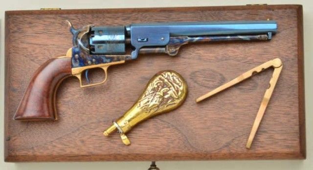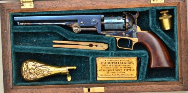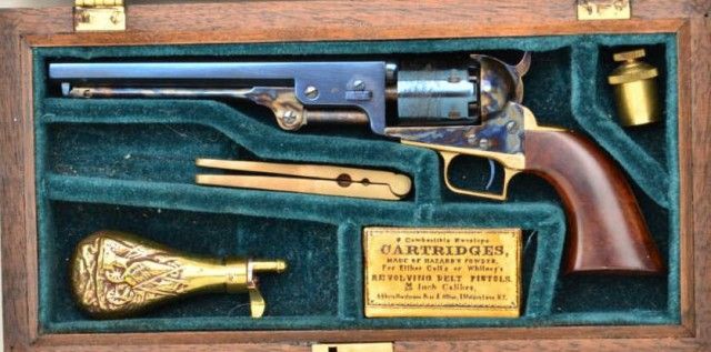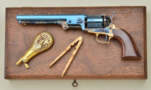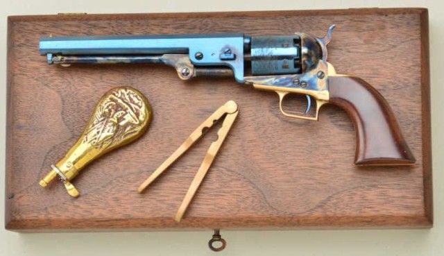 Miniature ½ scale percussion squareback Colt Navy case with accessories, serial # 439, marked “Uberti,” Italy. Condition is excellent. Est.; $500-$1,000.
