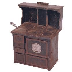 Miniature toy stove, "Garland", cast iron & tin w/6 burners (2 w/T-bar), silver medallion on oven do