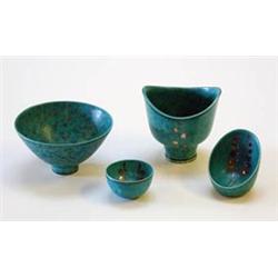 Miniatyrer, 4 stycken, argenta, H 3-8 cm, Wilhelm Kåge, Gustavsberg. SEK 2.500-3.000