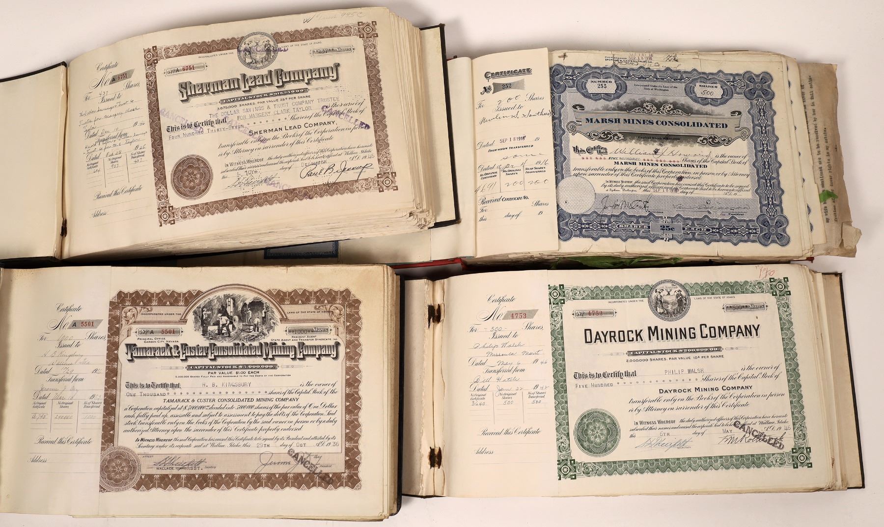 1) Marsh Mines Consolidated. #251-500. 2) Tamarack & Custer Consolidated. #5501-5750. 3) Sherman Lead Company. #6751-7000. 1930. 4) Dayrock Mining Company. #4753-5000. See Group 1 for more information. State:Idaho City: Date: Provenance: Stuart Mackenzie Montana Ephemera Collection