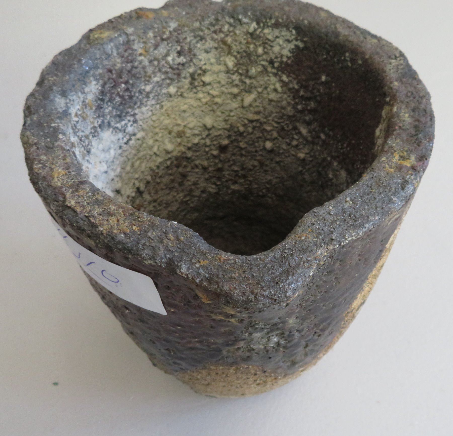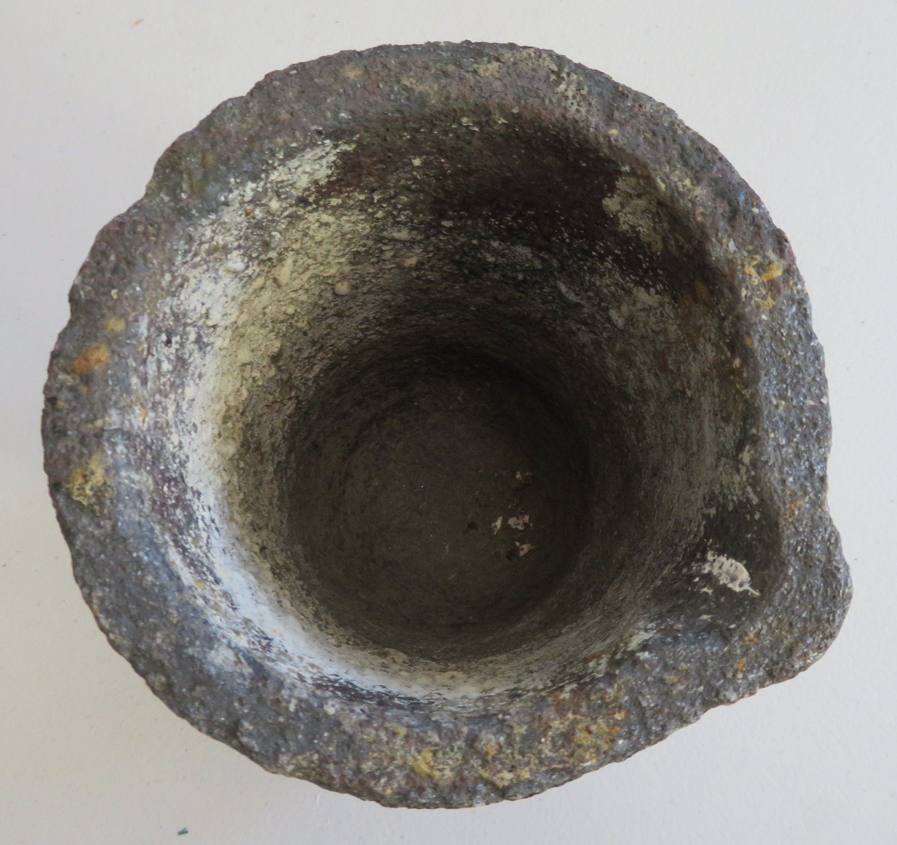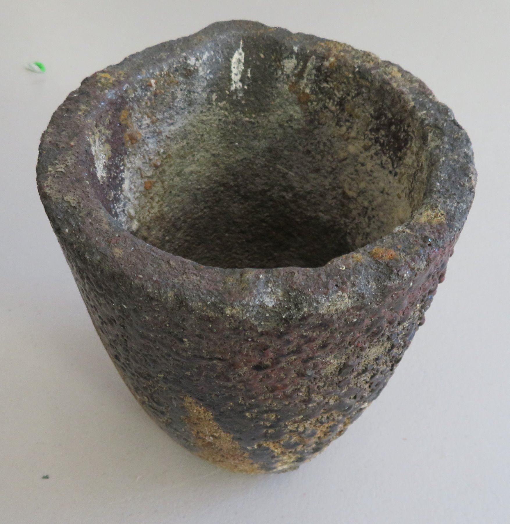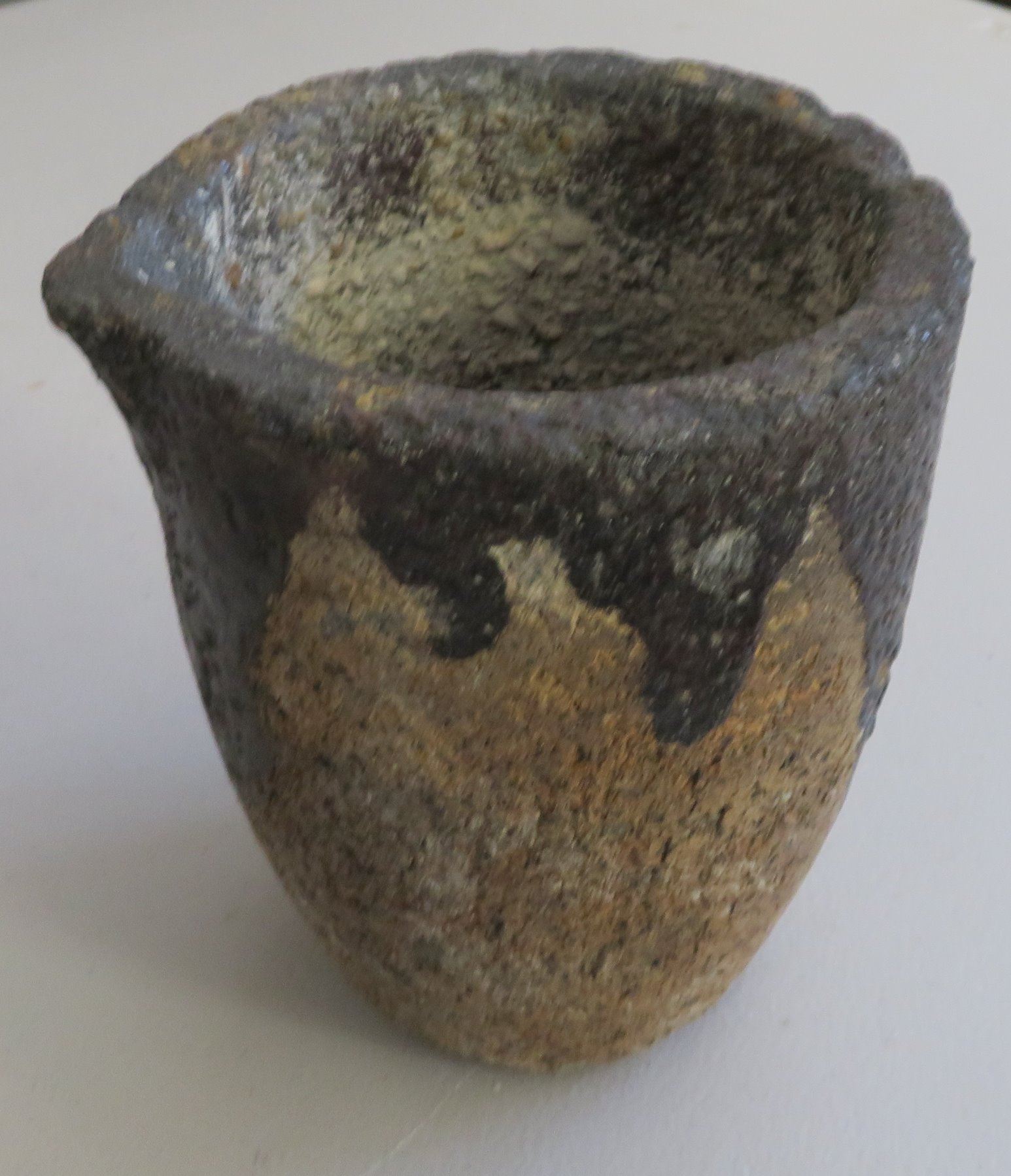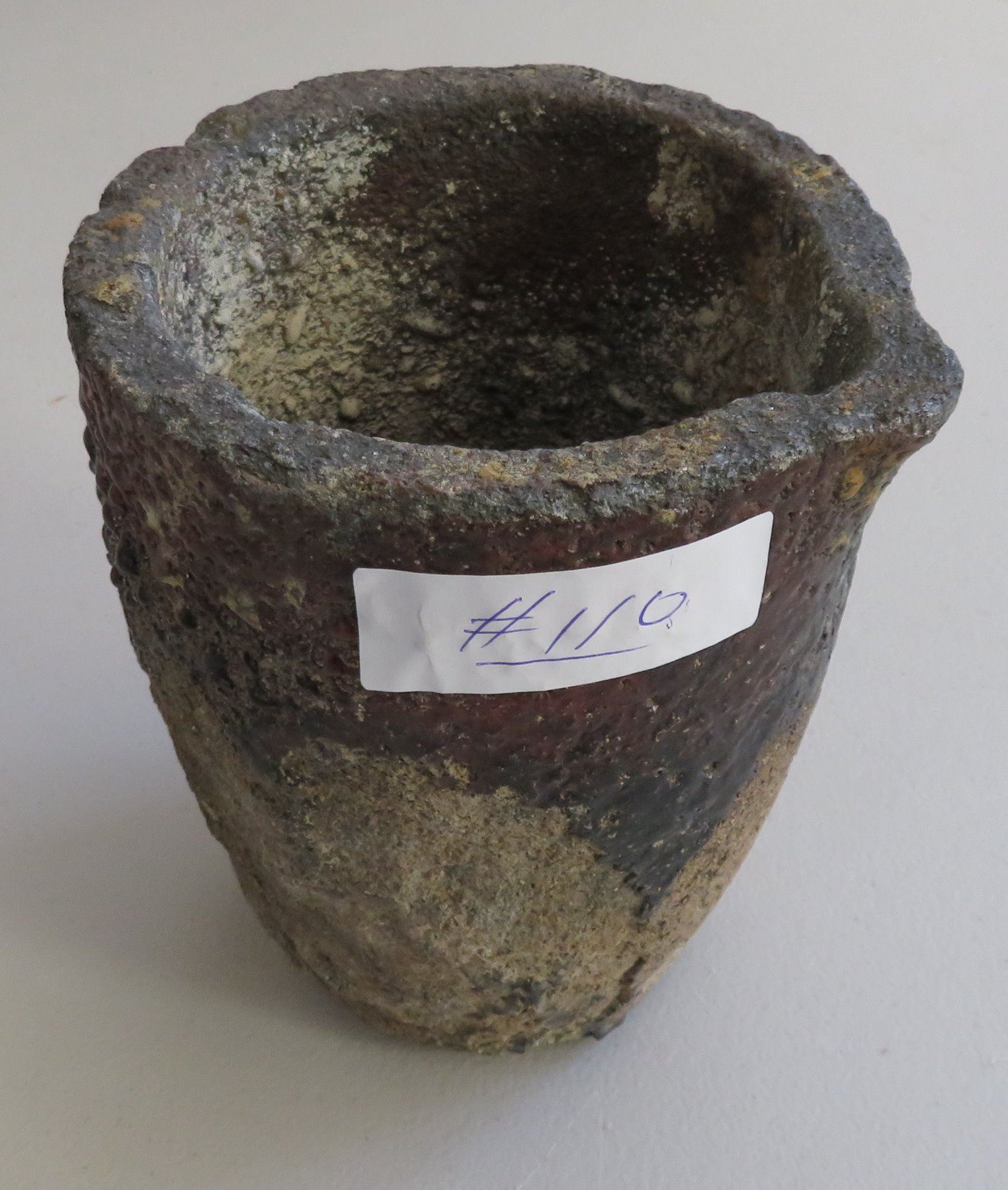 Mining Crucible, c. 1880s. Made of clay, the item measures 7 1/2" x 6". Found in Julian, California. Nice old mining relic. Condition: Well used, see images. Shipping: $40.00 USA estimate only, due to heavy weight.