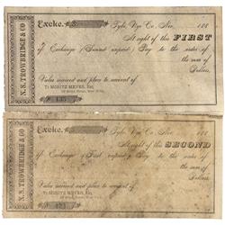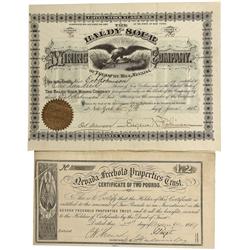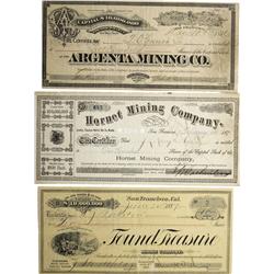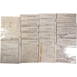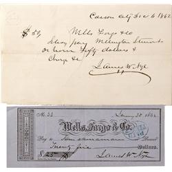Lot of 2. 1) Wells Fargo No. 33 issued for $25. Signed by James Nye. January 30, 1862. Cut cancelled at center. Black on blue. 2) Hand written Wells F