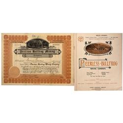 Lot of 2. 1. Peerless Bullfrog Mining Company stock; Incorporated in South Dakota, 1906; No. 3030 issued December 15, 1906 to Thomas Cowan for 500 s