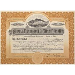 Incorporated under the laws of the State of Nevada, July 1907; Certificate No. 103 issued August 3, 1907 to M.S. Thompson for 1000 shares; signed by S