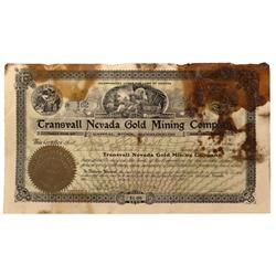 NV - Bullfrog,Nye County - 1906 - Transvall Nevada Gold Mining Company Stock