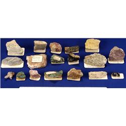 Lot of 19 specimens from a myriad of areas in Nevada. The specimens contain scheelite, powellite, wolframite, garnet, beryl, marmatite, sneelite, stro
