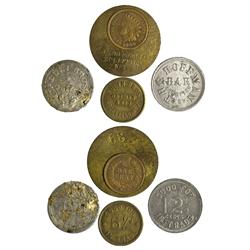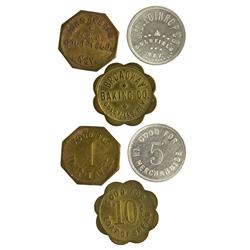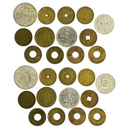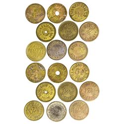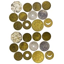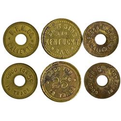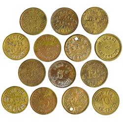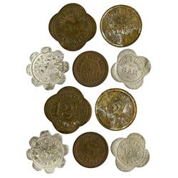 12 tokens: Liberty, Kelley's Place, H. Pohlabel, Mason Products, Star Bar, Kandy Kids (2), J.B. Co.(2), J.R. Plunkett, Rex Cigar Store, Hot Spri...