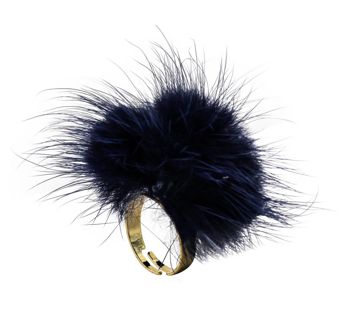 High end designer jewelry. Mink Fur Adjustable Ring - Gold Plated. Gold Plated Setting. Navy. Adjustable.