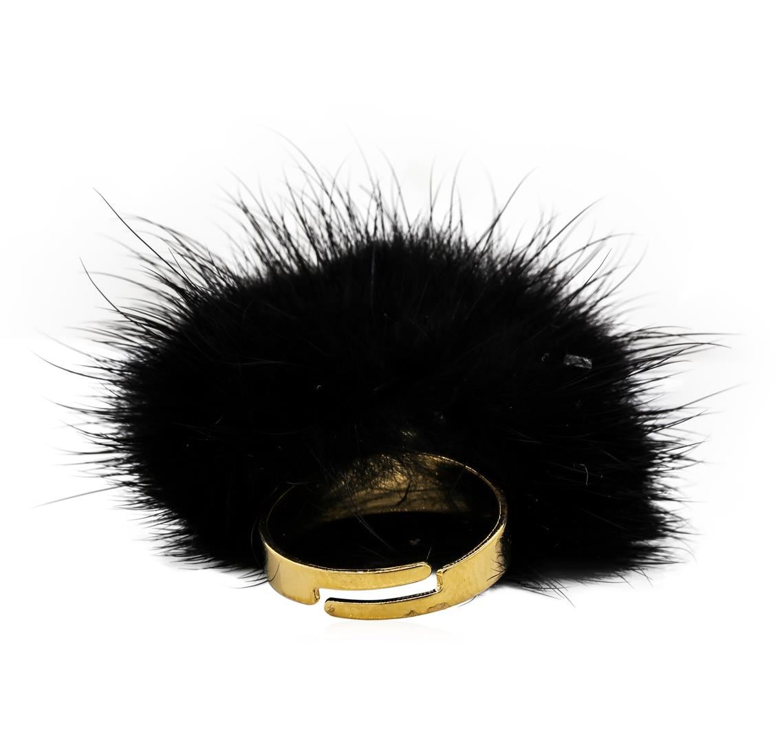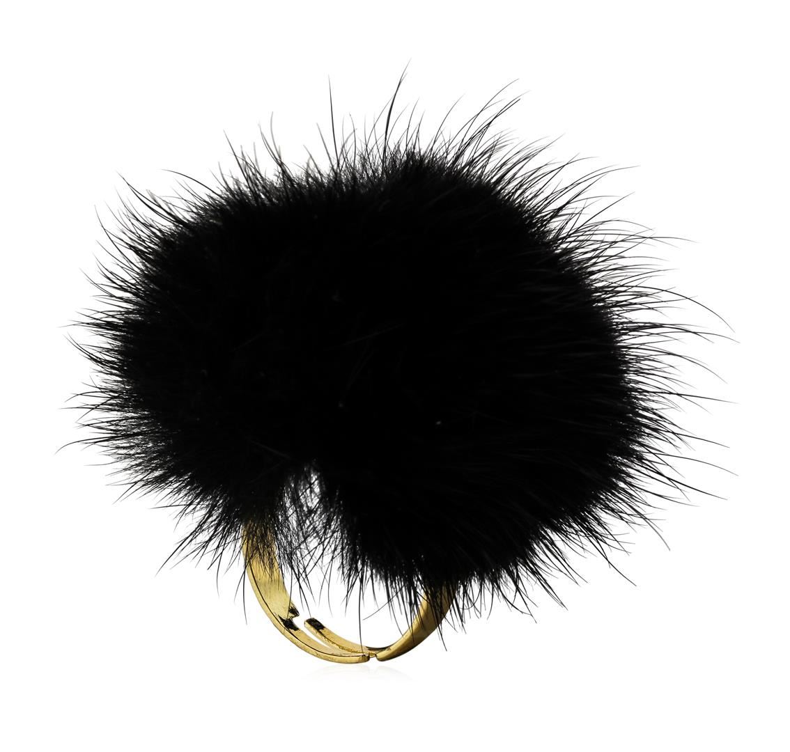 High end designer jewelry. Mink Fur Adjustable Ring - Gold Plated. Gold Plated Setting. Black. Adjustable.