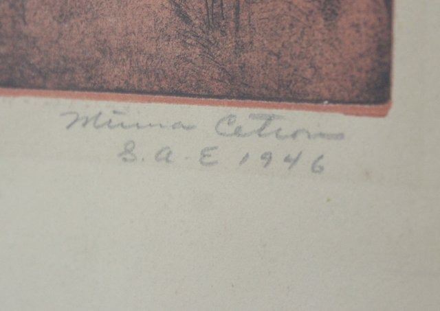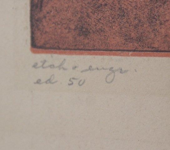 Etched engraving. Edition 50. Pencil signed and dated 1946 lower right. Approx. 17" H x 11" W sight, 23" H x 15" W framed.