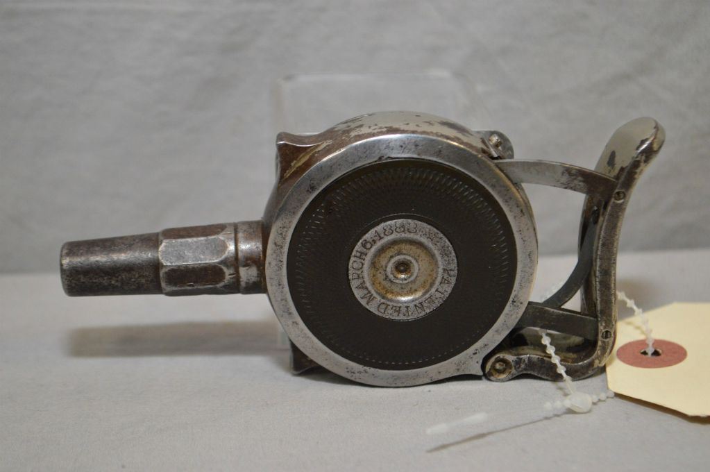 Minneapolis Firearms Co. Model The Protector .32 Extra Short Rimfire Cal 7 Shot Squeezer Type Palm Pistol w/ 51 mm bbl or 1 3/4" [ flaking nickel finish, to grey in some areas, hard rubber side plates, no grip pad on back lever, markings on side plates " The Protector Minn. Firearms Co.", reverse plate "Patented Mar.6, 1883" , Patent Date refers to that received by James Turbiaux of Paris, France, the Inventor. The actual production was by James Duckworth, Springfield, Mass. Total Quantity Estimated 3000, Circa 1891 - 1892 ] Ser # 2640 ANTIQUE NO PAL REQ