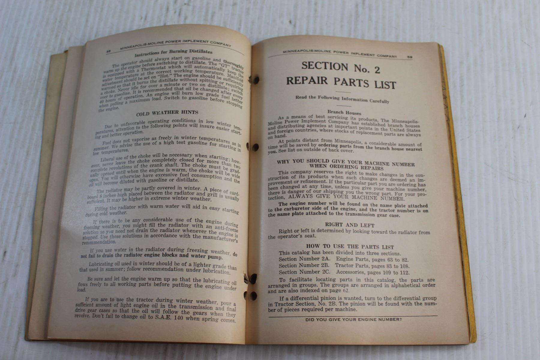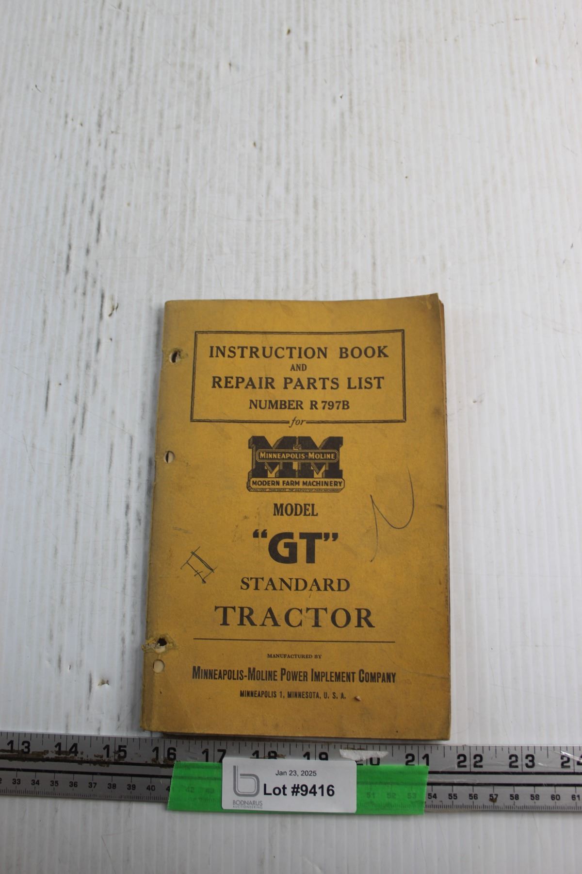 Minneapolis Moline GT Model Standard Tractor Instruction Book and Repair Parts List