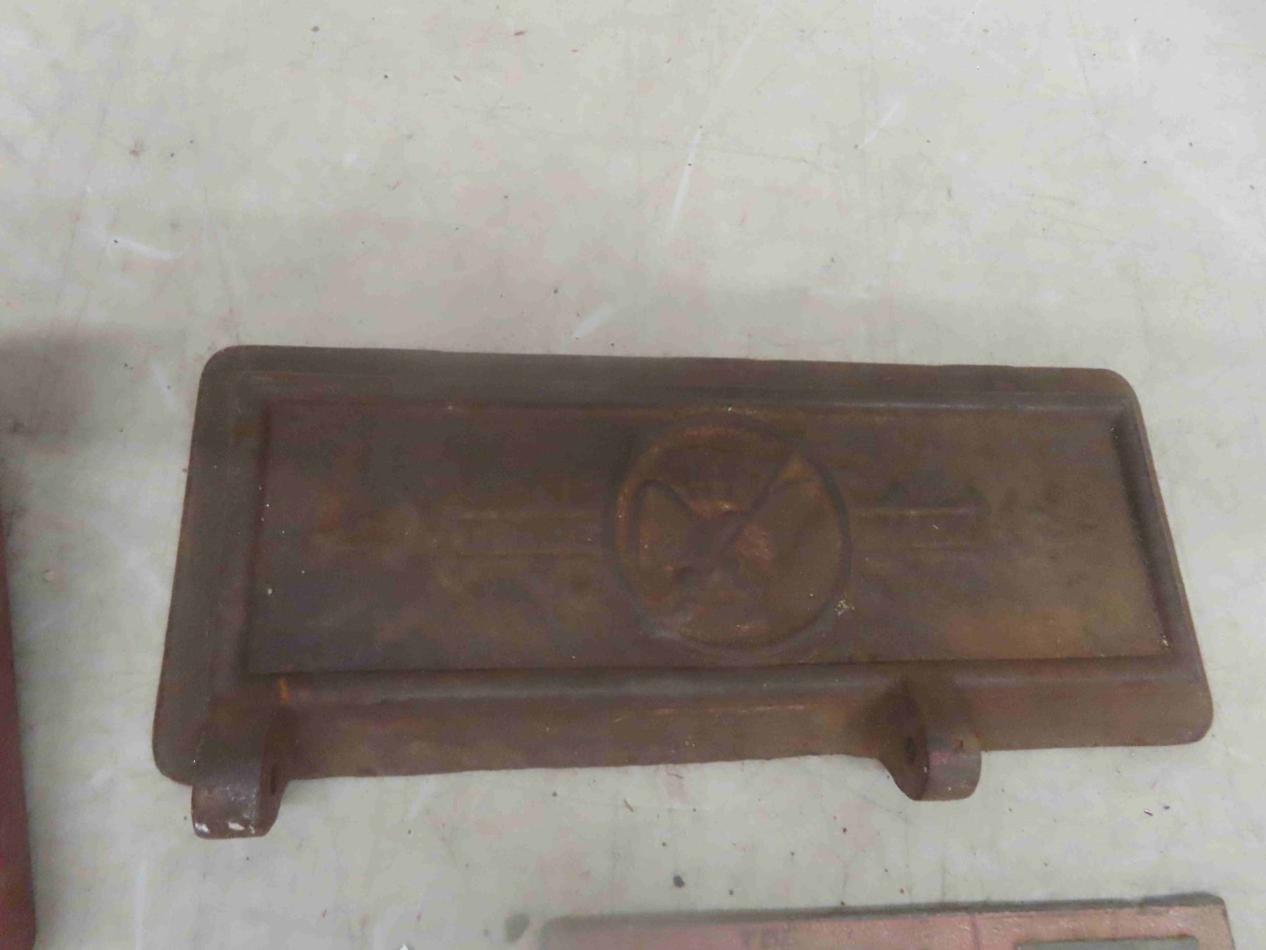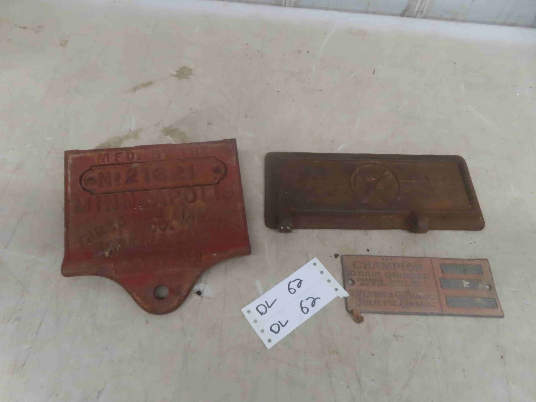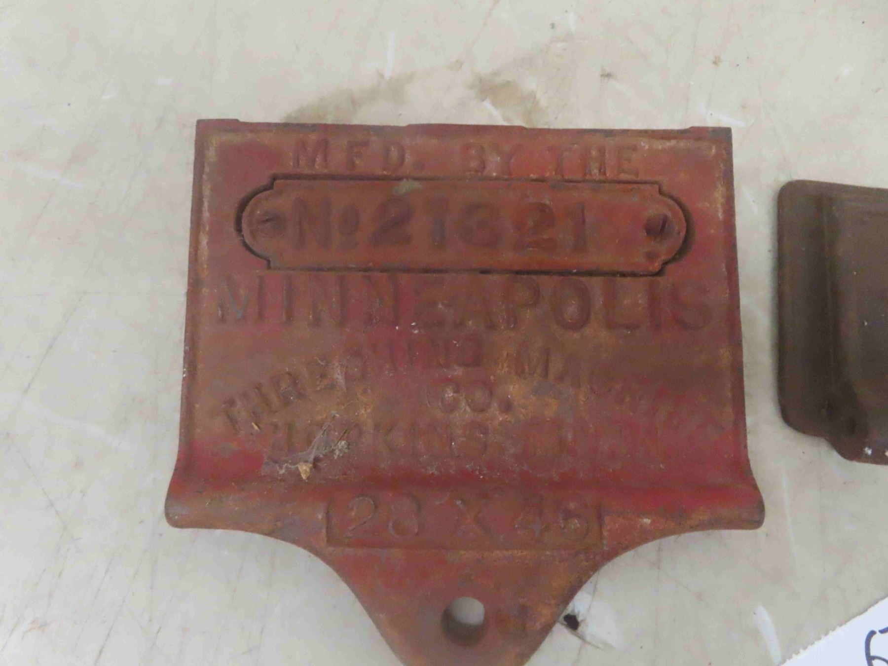 Minneapolis Threshing Machine Casting, Metal Champion Grader Tag , Cast Implement Tool Box Lid