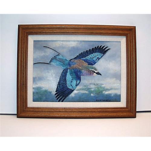 Wilwerding, W. J. b.1891, Winona, Minnesota / d. 1966. This oil painting is a life-size portrayal of the African bird, Lilac-breasted Blue Roller in flight. The painting is in good condition