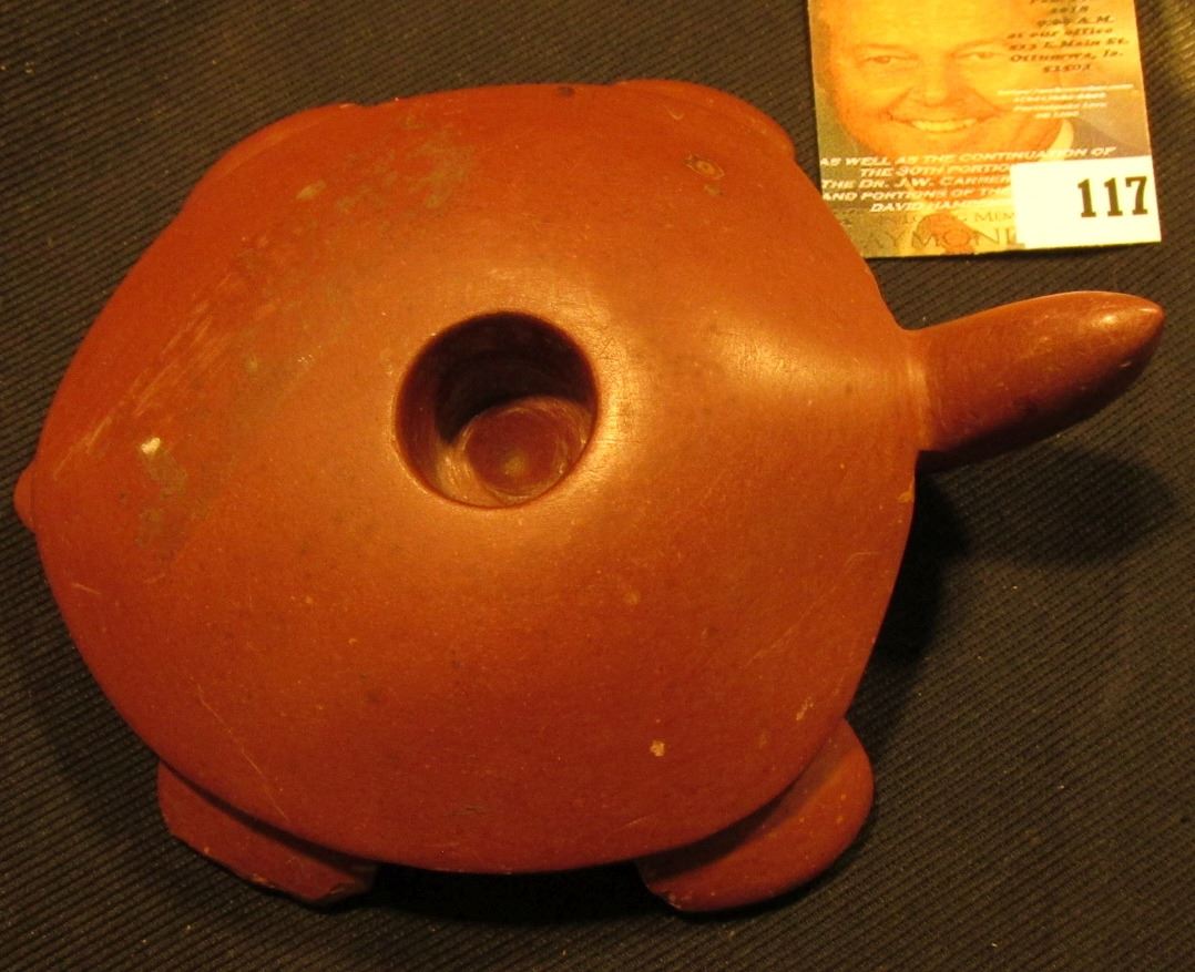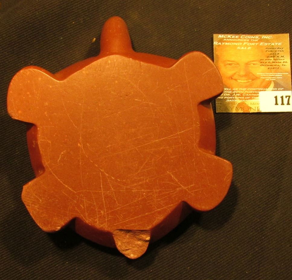 Minnesota Red Pipestone Tortoise Candle Holder. Tail is broke. 4 1/8" x 5 1/4".