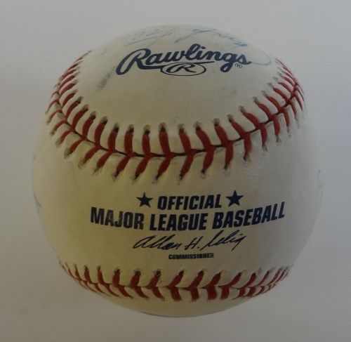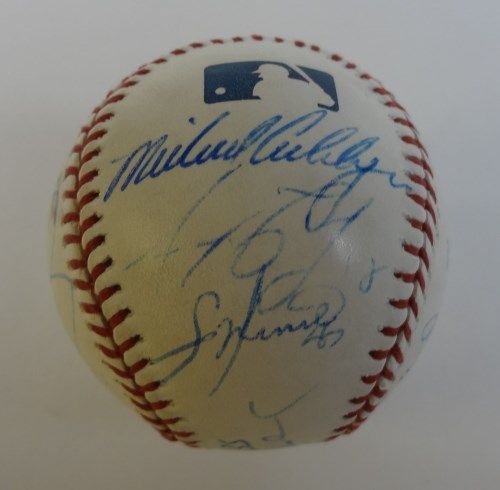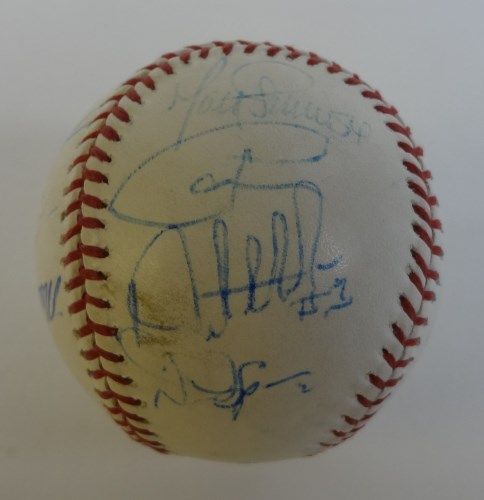 AUTOGRAPHED by Jim Thome, Fransisco Liriano, Michael Cuddyer, Denard Span, Orlando Hudson, Jose Morales, Ron Gardenhire (Sweet Spot), Matt Guerrier, Carl Pavano, Matt Capps, Jesse Crain, Jeff Manship, Alexi Casilla. No COA. Est. Value $70.00 - $90.00.