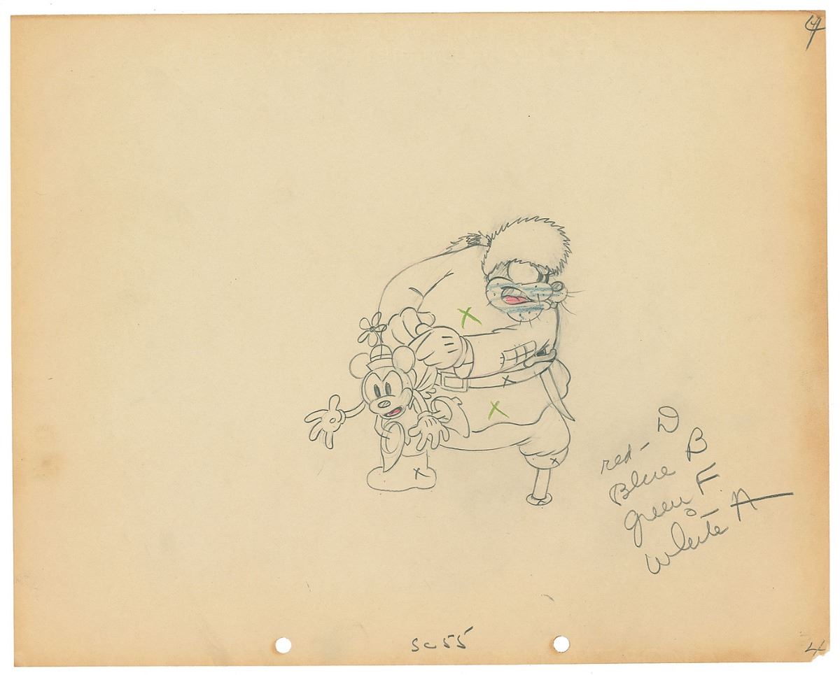 Minnie Mouse and Peg-leg Pete production drawing from The Klondike Kid