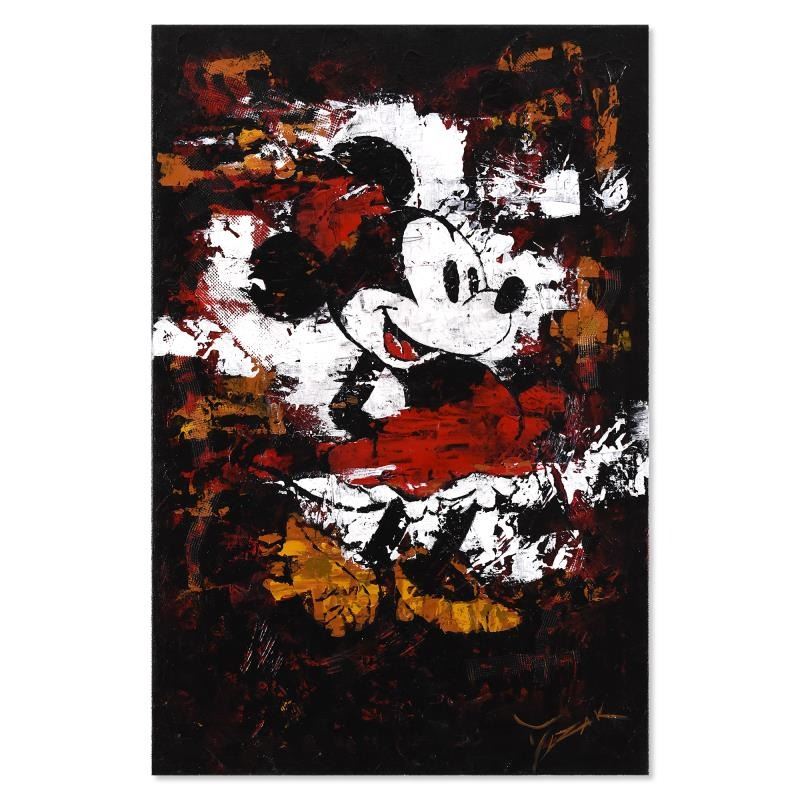 "Minnie" is an original mixed media acrylic painting with charcoal and metal wire on canvas by Trevor Mezak, hand signed by the artist. This piece comes gallery wrapped. Includes Letter of Authenticity. Measures approx. 24" x 36" (image).