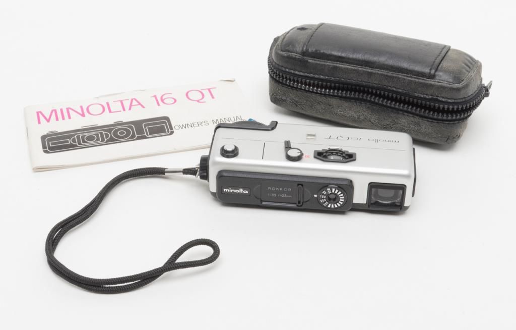 Minolta 16 QT camera with owner’s manual and soft case. Est.: $25-$50.