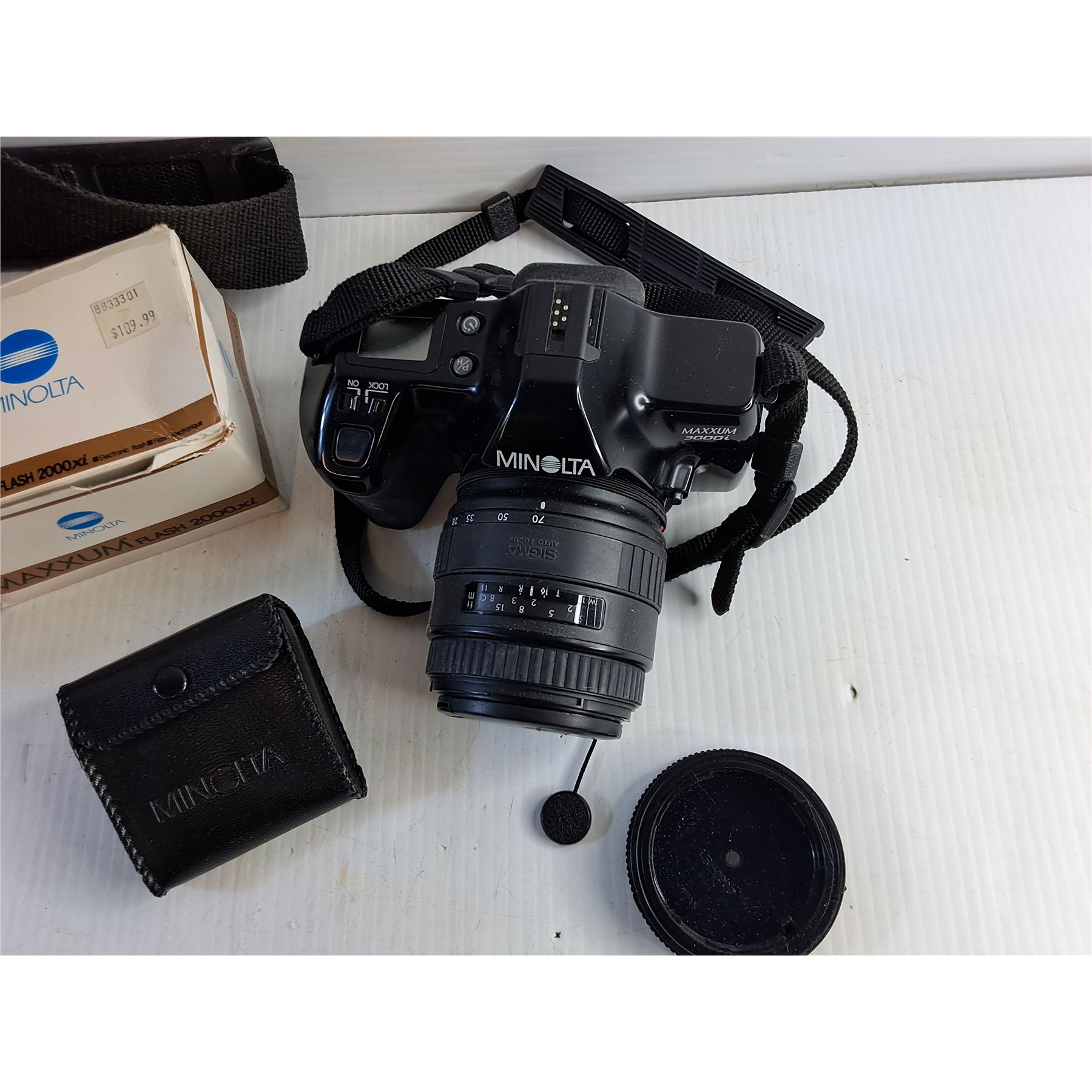 Minolta Maxxum 3000i Camera, Minolta 2000 xi Flash and Voyager Camera Bag - As Is